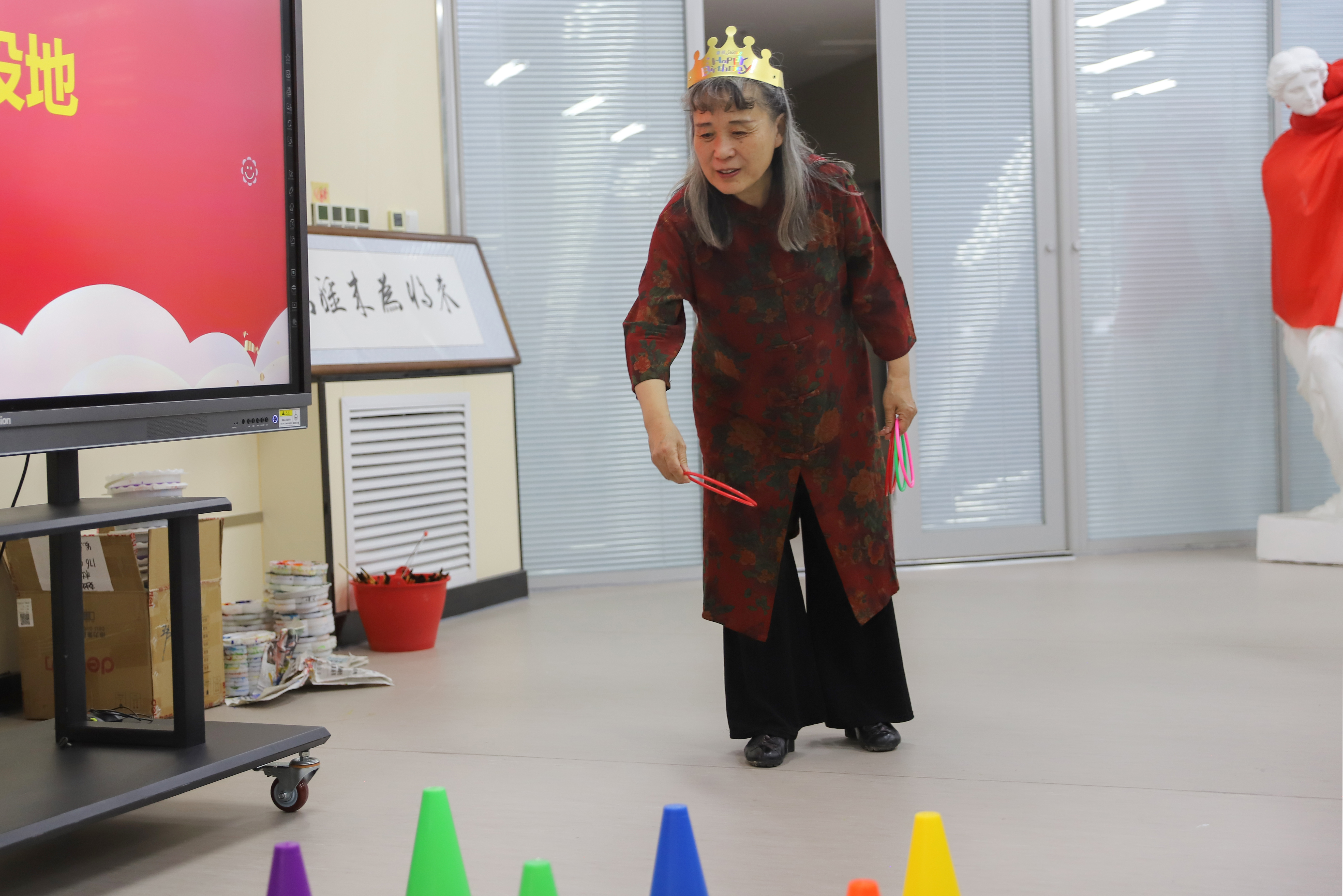 活动还设置了“你画我猜”“神投手”等小游戏环节,教师们纷纷上台,积极参与,欢声笑语不断。