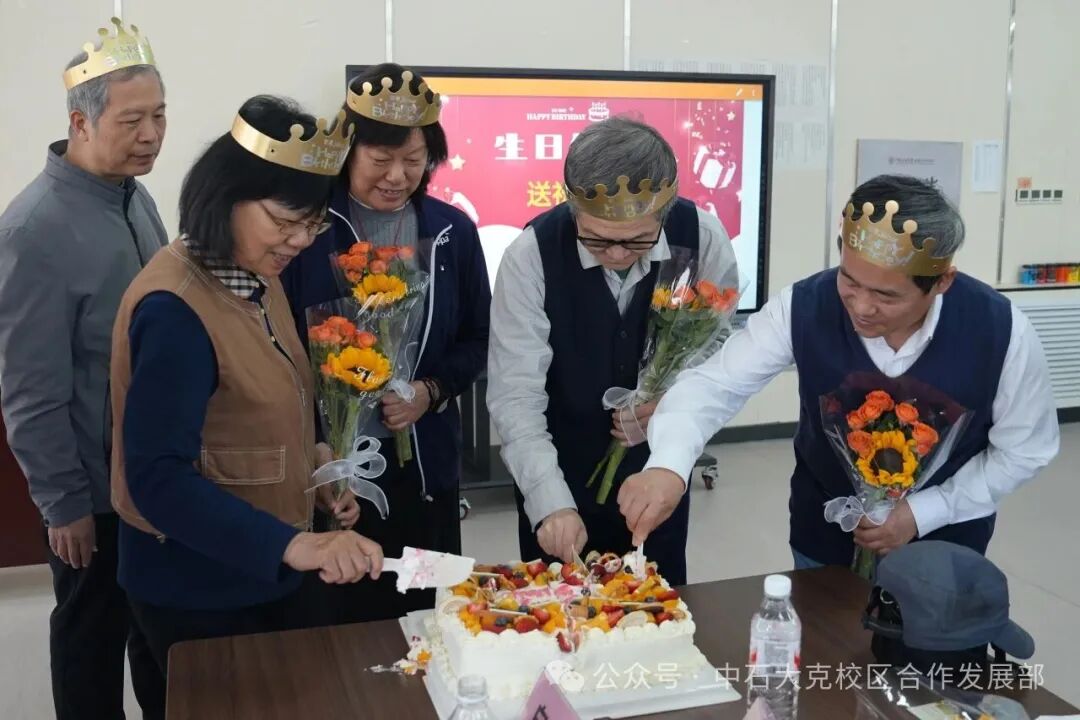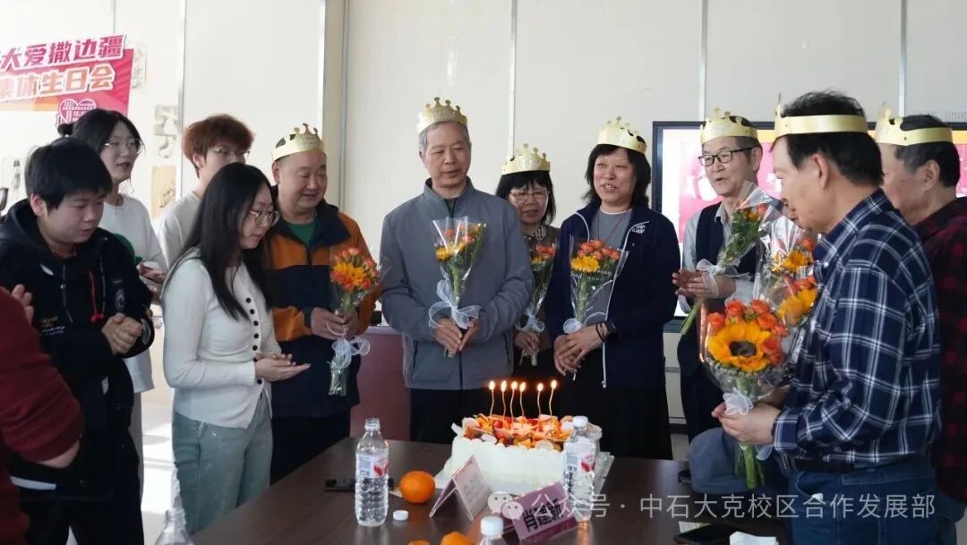 生日会简单温暖,主持人开场并依次介绍寿星老师,送上真挚祝福。费葳葳为老师们逐一佩戴生日帽,传薪社的成员为老师们献上鲜花,大家围聚在一起切分蛋糕,分享这份甜蜜及喜悦。同学们随后进行自我介绍,与老师们围坐畅谈,现场气氛轻松愉快。