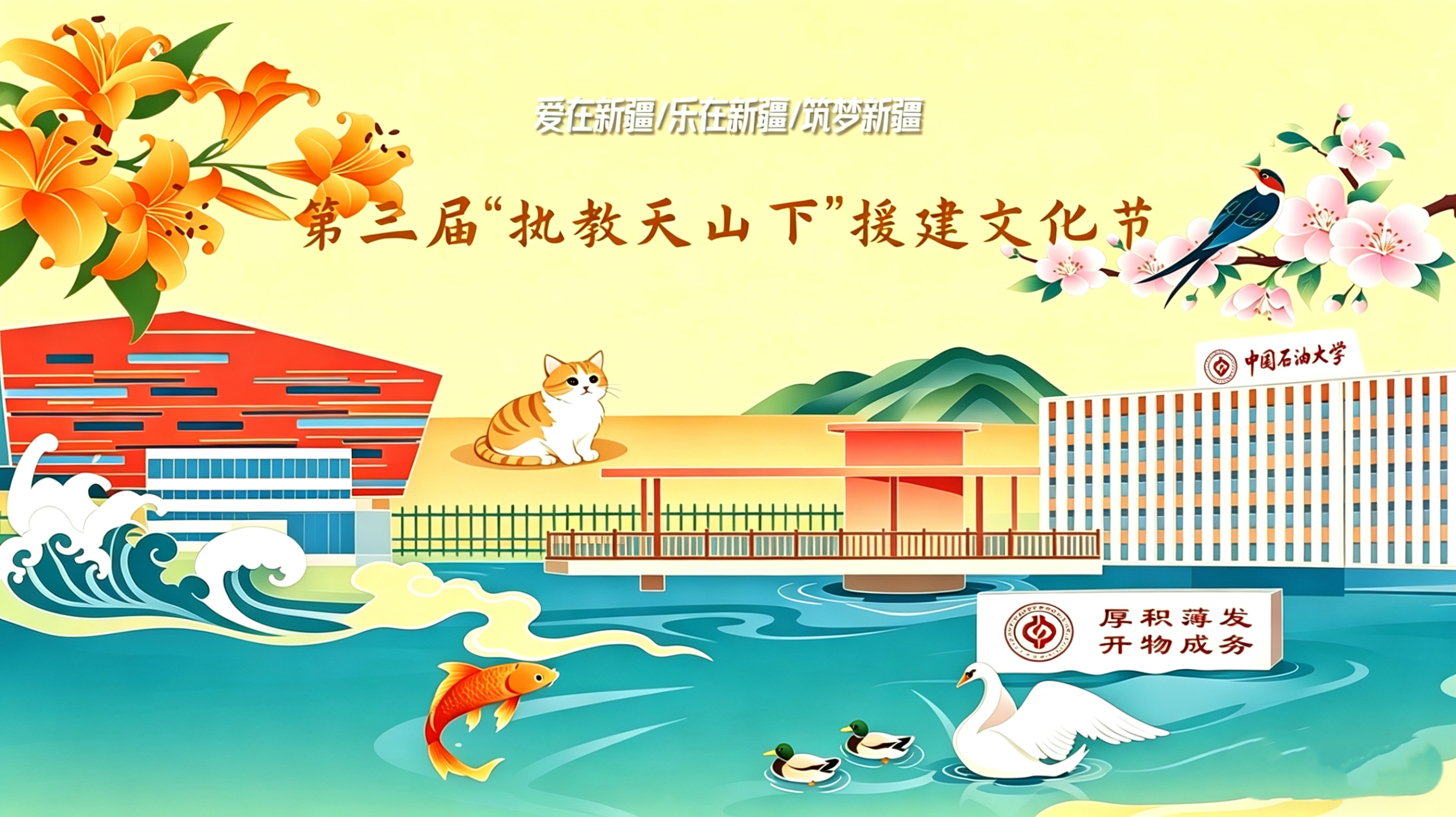 自2018年教育部高起点部署对口支援工作、2020年启动“高校银龄教师支援西部计划”以来,校区在各方支援下实现了高质量发展。“执教天山下”援建文化节已成功举办两届,成为总结援建经验、展示教师风采、深化文化润疆的重要品牌载体。第三届援建文化节旨在巩固前两届成果的基础上,进一步深化“爱在新疆、乐在新疆、筑梦新疆”三大行动内涵,强化教师的使命担当,续写教育援疆的动人故事。