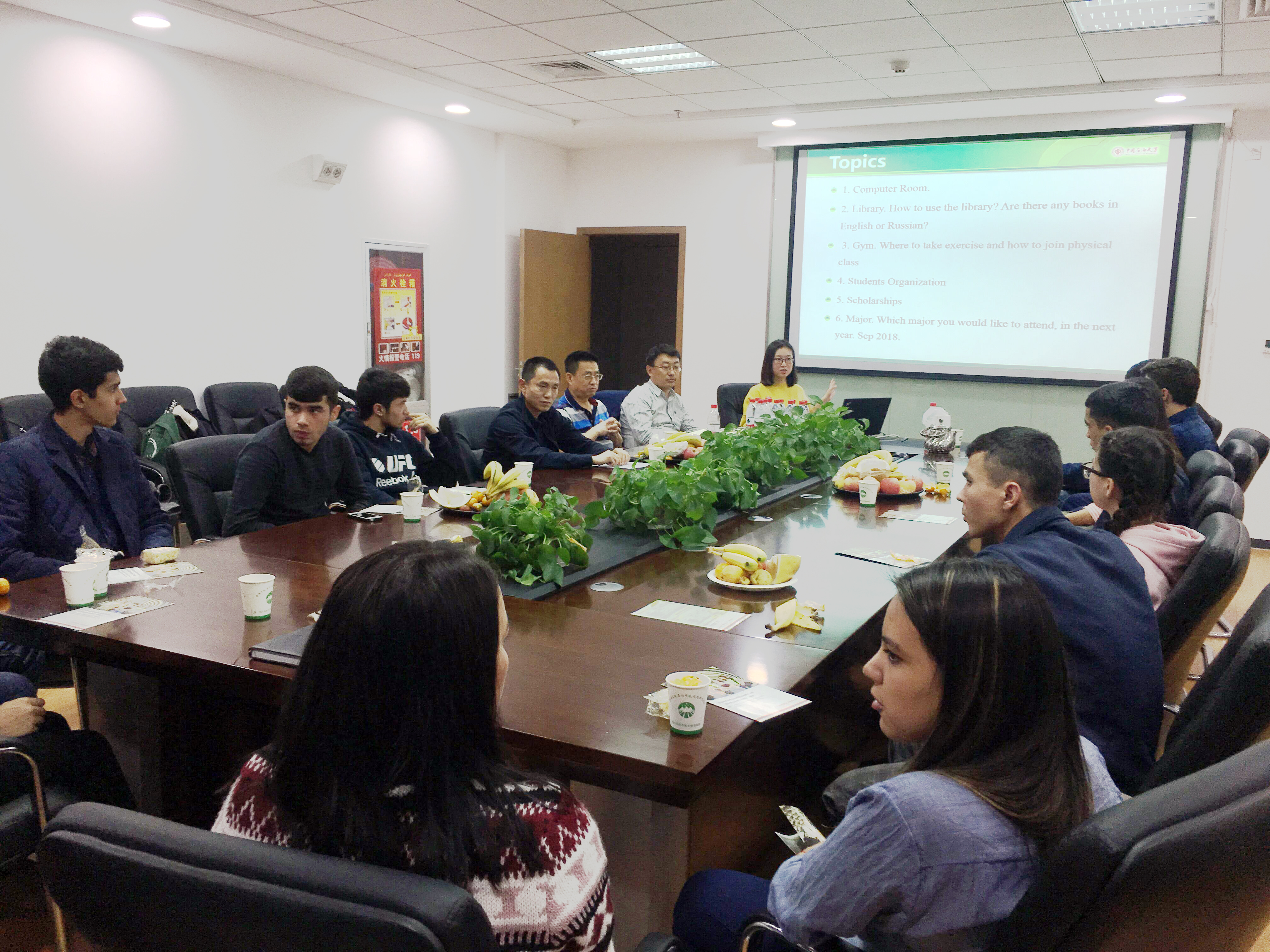 在留学生座谈会上,同学们用汉语介绍自己,并对目前在克拉玛依校区的生活发表了感想。在各位老师的鼓励下,大家使用英语、俄语和尚不流利的汉语,踊跃表达了自己的意见和需求。他们的心声和想法得到了在场老师们的仔细聆听和积极回应。肖磊鼓励同学们积极参与校区学生组织和社团活动,真正融入中国社会文化环境,刻苦学习,为接下来的专业学习打好基础。