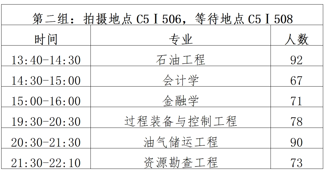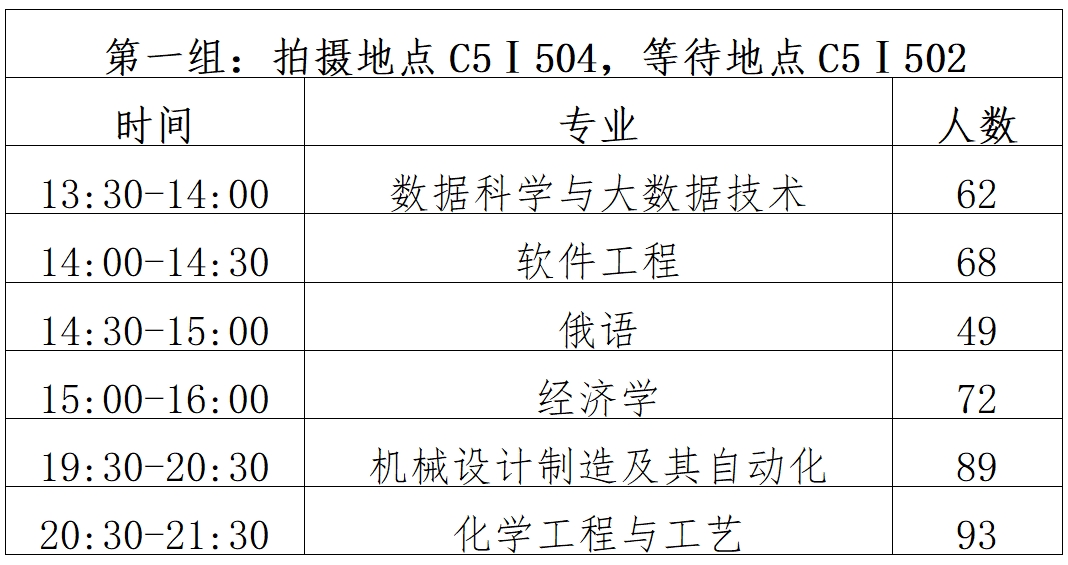 备注:因课程冲突无法参与本专业集体拍摄的同学可于21:30-22:10到C5Ⅰ504拍摄。
