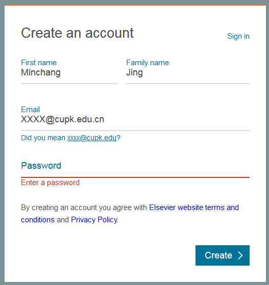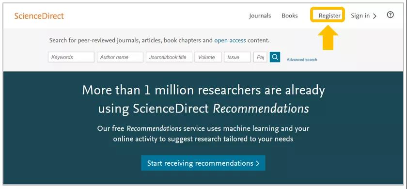 打开ScienceDirect主页(https://www.sciencedirect.com/); 点击页面右上角“Register”,用机构邮箱(如:xxxx@cupk.edu.cn、xxxx@st.cupk.edu.cn) 注册ScienceDirect个人账号。