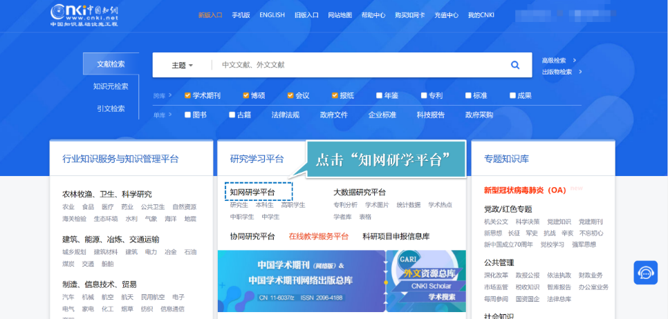 方法①:1. 打开中国知网(cnki.net) 2. 点击中间研究型学习平台