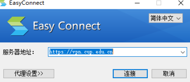 5)打开EasyConnect,输入https://vpn.cup.edu.cn;