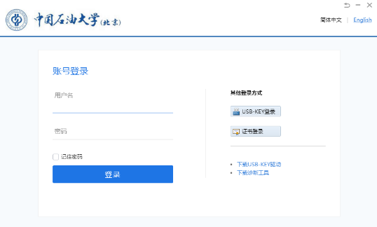 通过校外网络访问学校内网的资源时,需要通过VPN进行访问。使用VPN必须下载并安装EasyConnect客户端。下载地址:https://vpn.cup.edu.cn。安装好客户端后,通过校园网账户(即门户账户)进行登录,用户名为学工号,密码与门户密码一致。以下是各操作系统不同的登录方式。