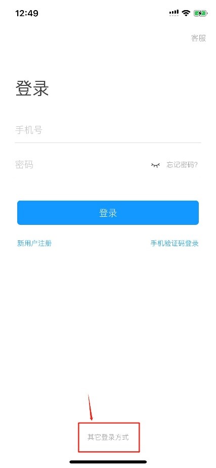 1. 登录方式较之前有很大的变化,打开升级后的移动图书馆app,即可看到登录界面,点击最下方其他登录方式: