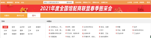 2.1、出版社分会场:按出版社综合分类和出版公司名称展示各出版社图书,点击分类首先展示该类别下的出版社名单,点击出版社名称即可进入选书界面。