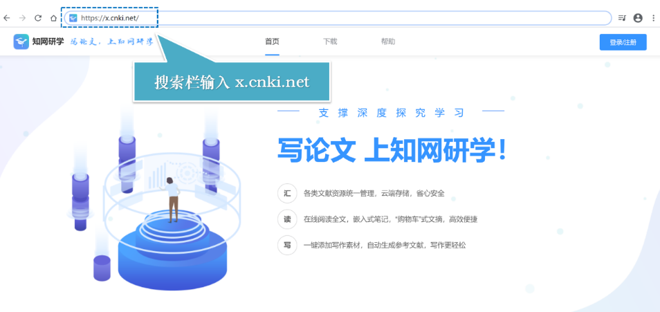 方法①:1. 打开中国知网(cnki.net) 2. 点击中间研究型学习平台