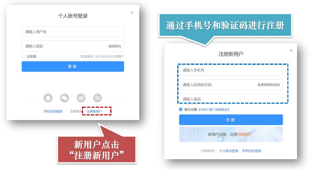 3. 新用户点击下方注册新用户,通过手机号和验证码进行注册