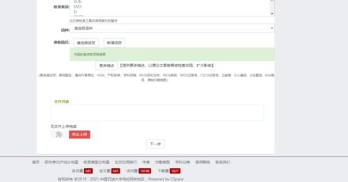 点击下方的上传按钮提交论文文件,上传成功后点击下一步进入检查页面