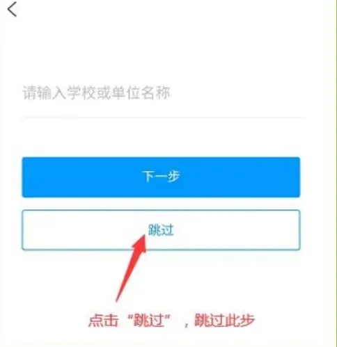 Step2 :新用户手机号注册登录,老用户可使用学习通账号密码直接登录。后进入选择单位页面,注意选择“跳过”,点击“下一步”进入验证页面,输入真实姓名,点“确定”;