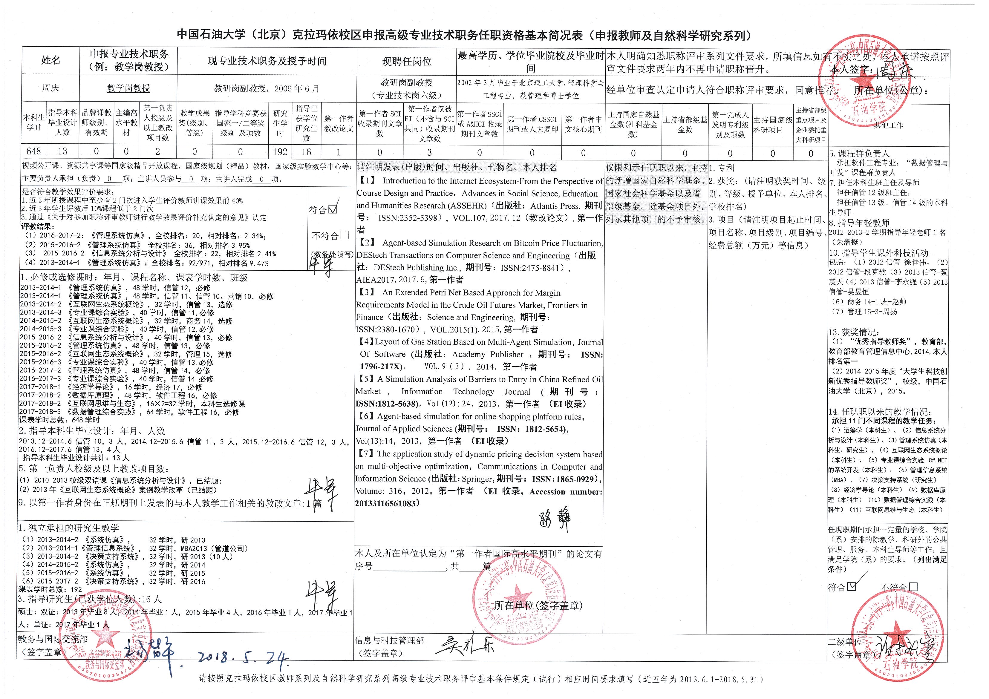 | 1 | 石油学院 | 周庆 | 教授(教学岗) | |||