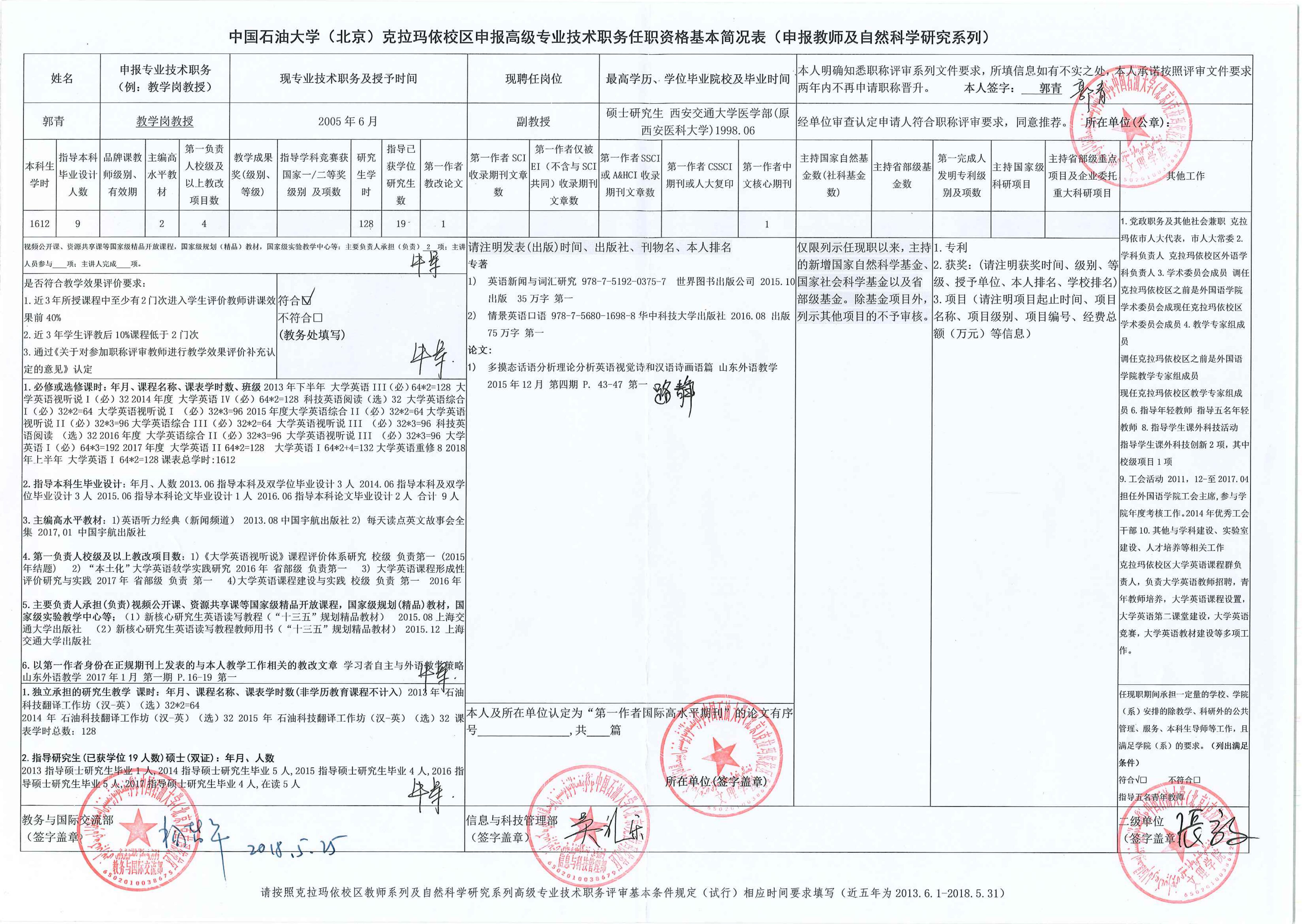 | 6 | 文理学院 | 郭青 | 教授(教学岗) | |||