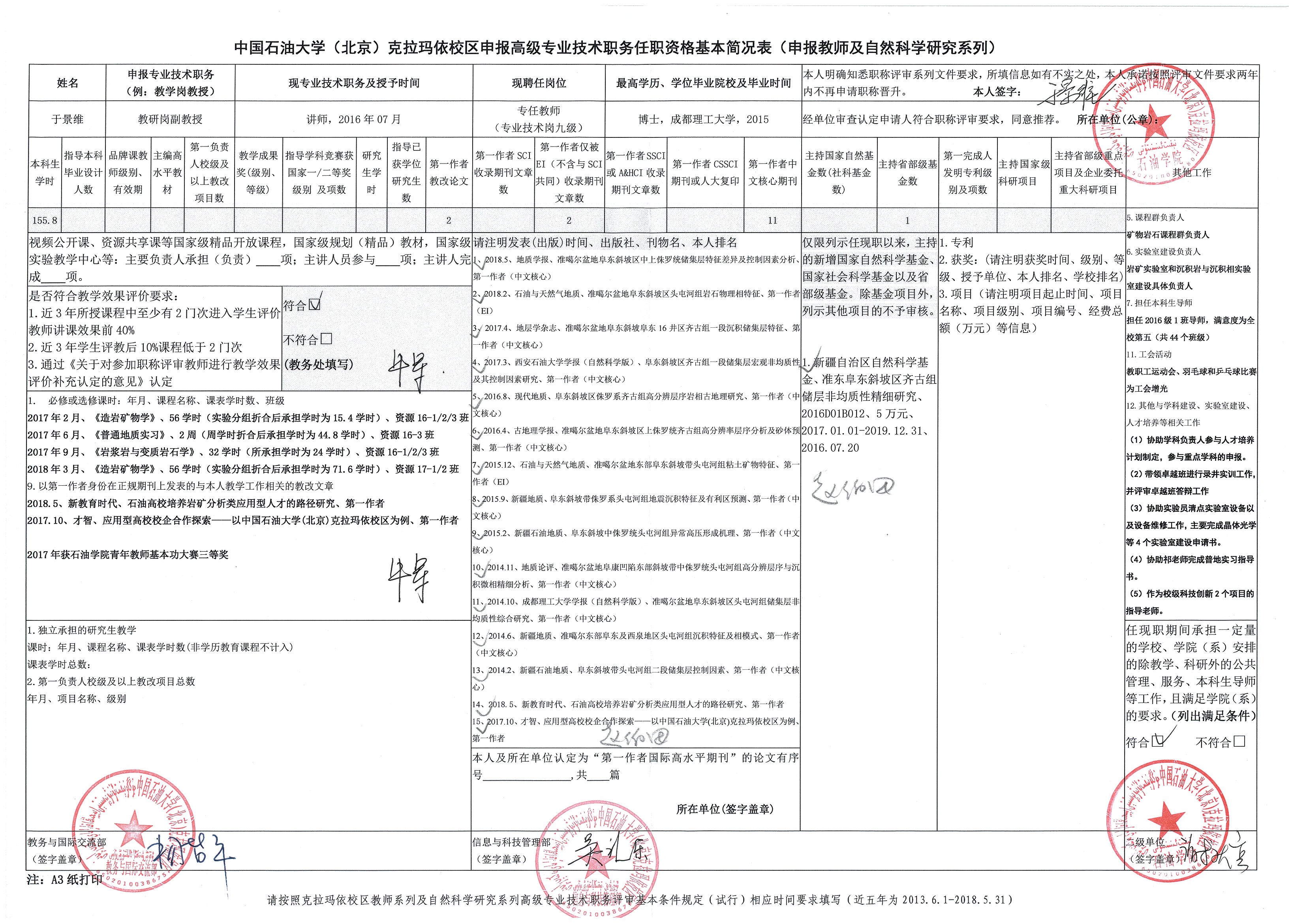 | 1 | 石油学院 | 于景维 | 副教授(教研岗) | |||