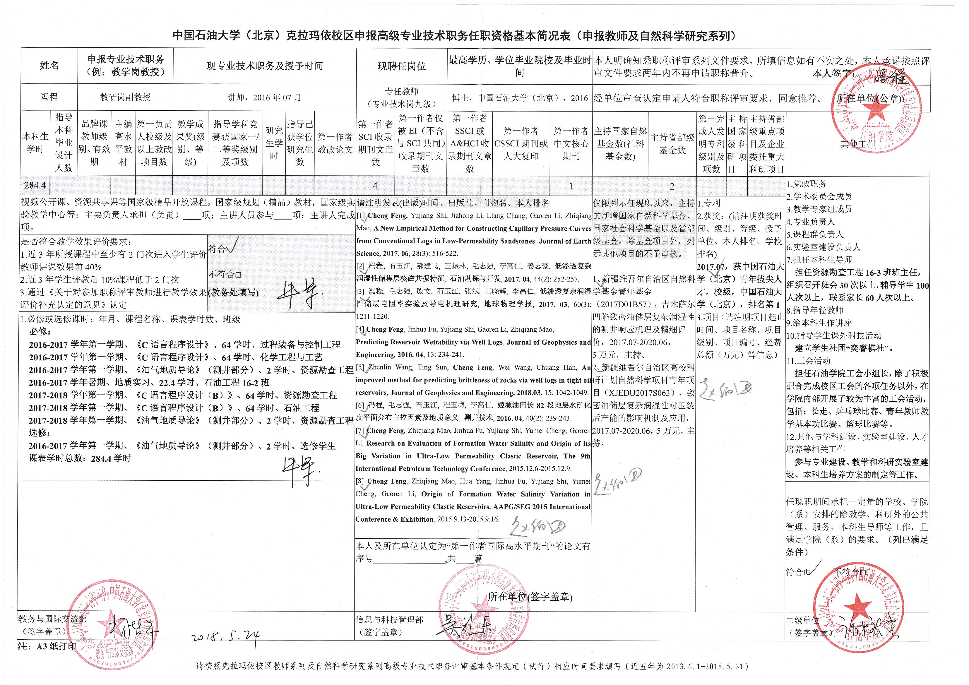 | 2 | 石油学院 | 冯程 | 副教授(教研岗) | |||