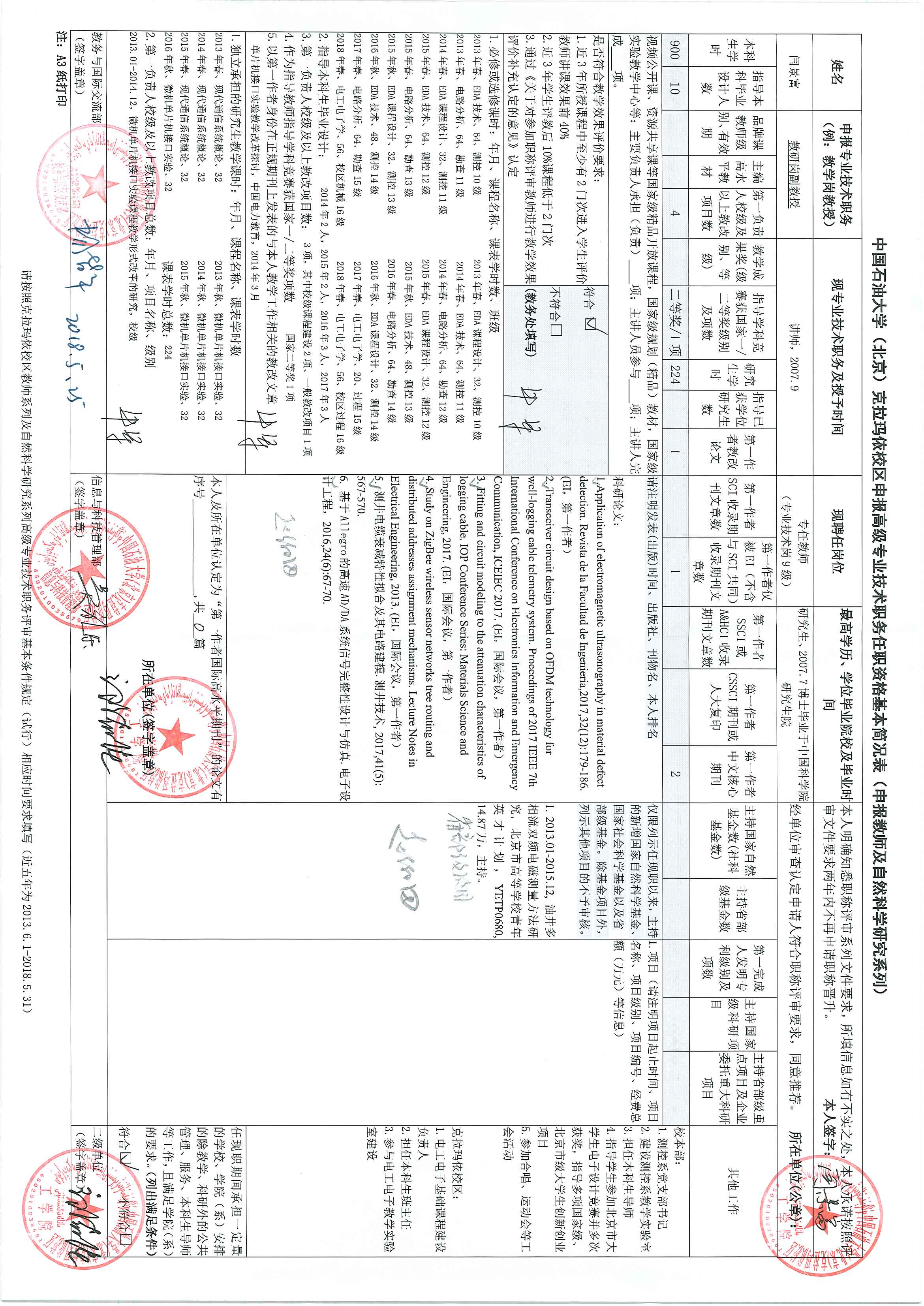 根据《校区关于2018年度专业技术职务评审工作的通知》,经本人申报、学院推荐、组织与人事工作部审核,现将申报人员《申报高级专业技术职务任职资格基本简况表》、《职称评审标准自查、审查表》及《晋升高级专业技术职务近五年成果一览表》进行公示,公示期自2018年6月7日至2018年6月13日,共计7天。如对上述申报人员材料有异议,请以书面形式向组织与人事工作部反映并署真实姓名。