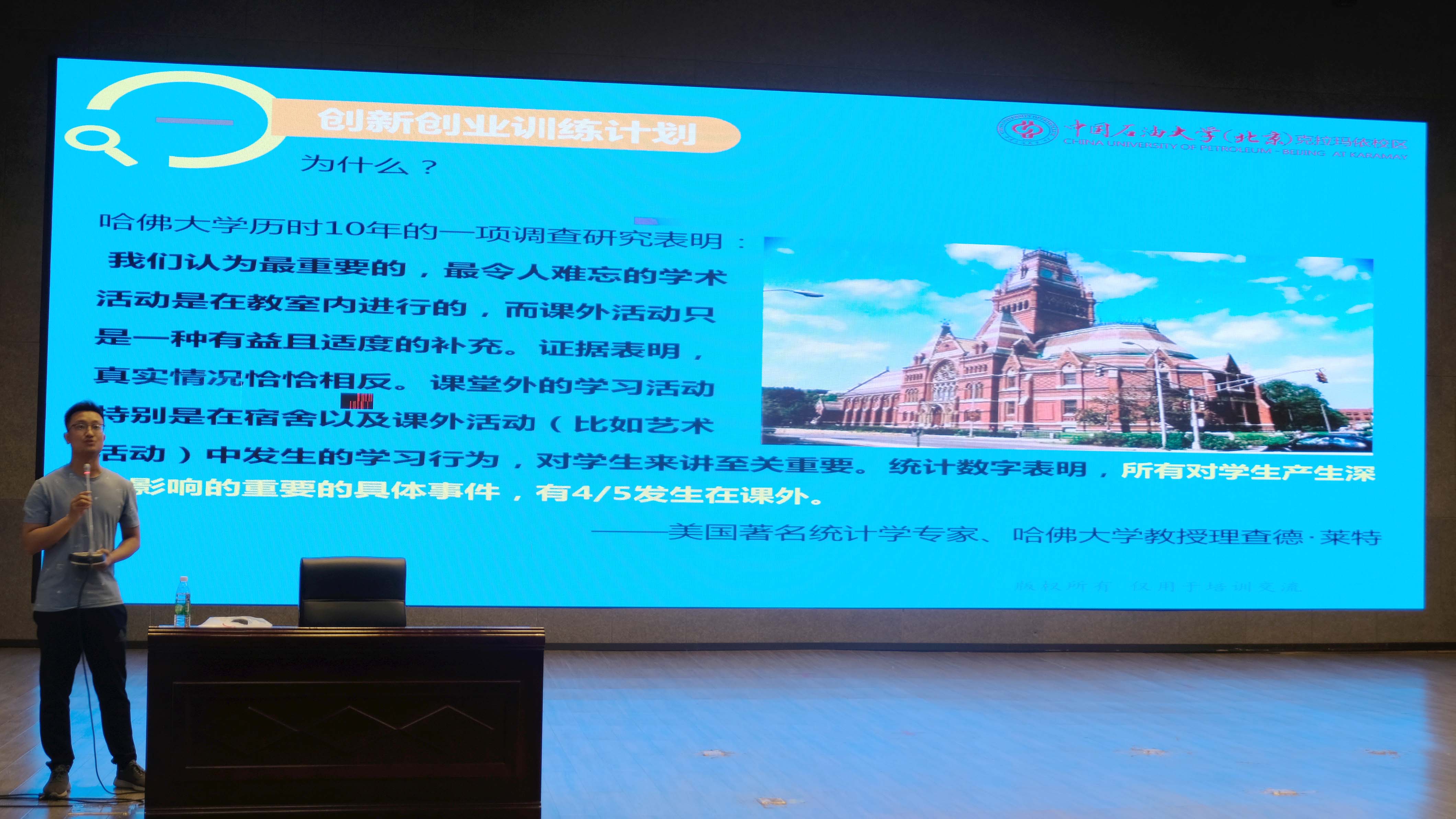 为增强学生创新创业意识,帮助了解创新创业相关政策和内容,提升创新创业能力与水平,4月21日晚,校区文理学院于J2一层报告厅举办了创新创业解析讲座。讲座由文理学院辅导员王均涛主讲,文理学院2017级、2018级全体学生参加讲座。