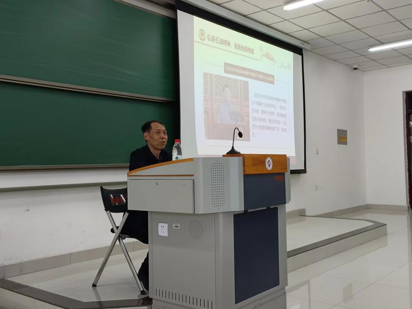 4月15日,新疆油田公司党委宣传部部长、企业文化处处长范大平以“新疆油田发展历史和文化传承”为主题,应邀为学生作专题讲座。讲座中,范大平讲述了克拉玛依这座城市的的过去、现在与未来,分享了个人对思想政治教育专业的理解与期待。他结合国际国内环境,向学生们全方位展现了克拉玛依油田的发现与新疆油田66年的历史征程,带领同学们探索新疆油田的精神与文化积淀。