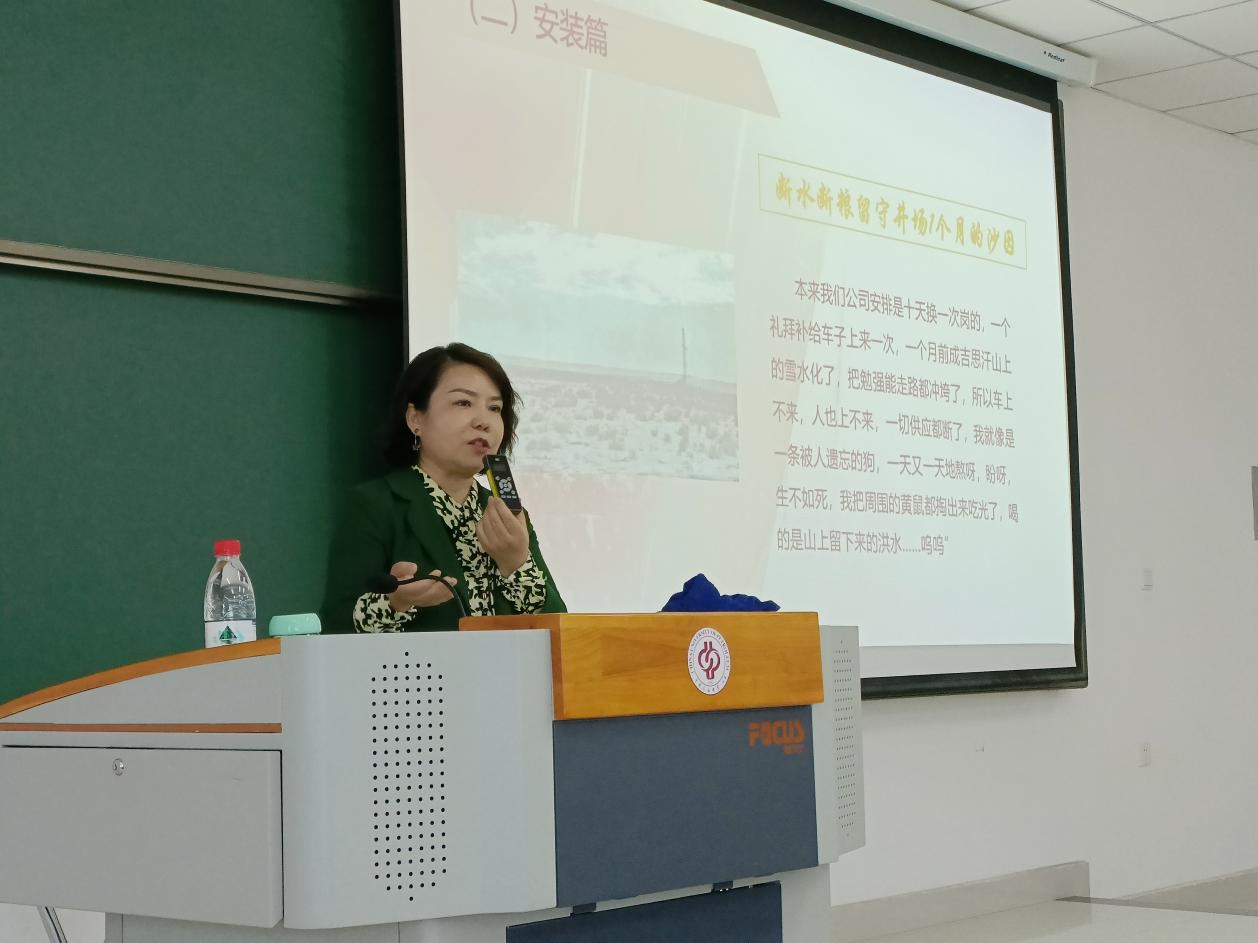 4月29日,新疆油田公司准东采油厂机关党总支副书记,高级政工师马林娟从勘探、安装、打井、会战、传承五个维度娓娓道来,以丰富的细节、生动的情节、细腻的情感为同学们讲述克拉玛依油田勘探开发的故事。