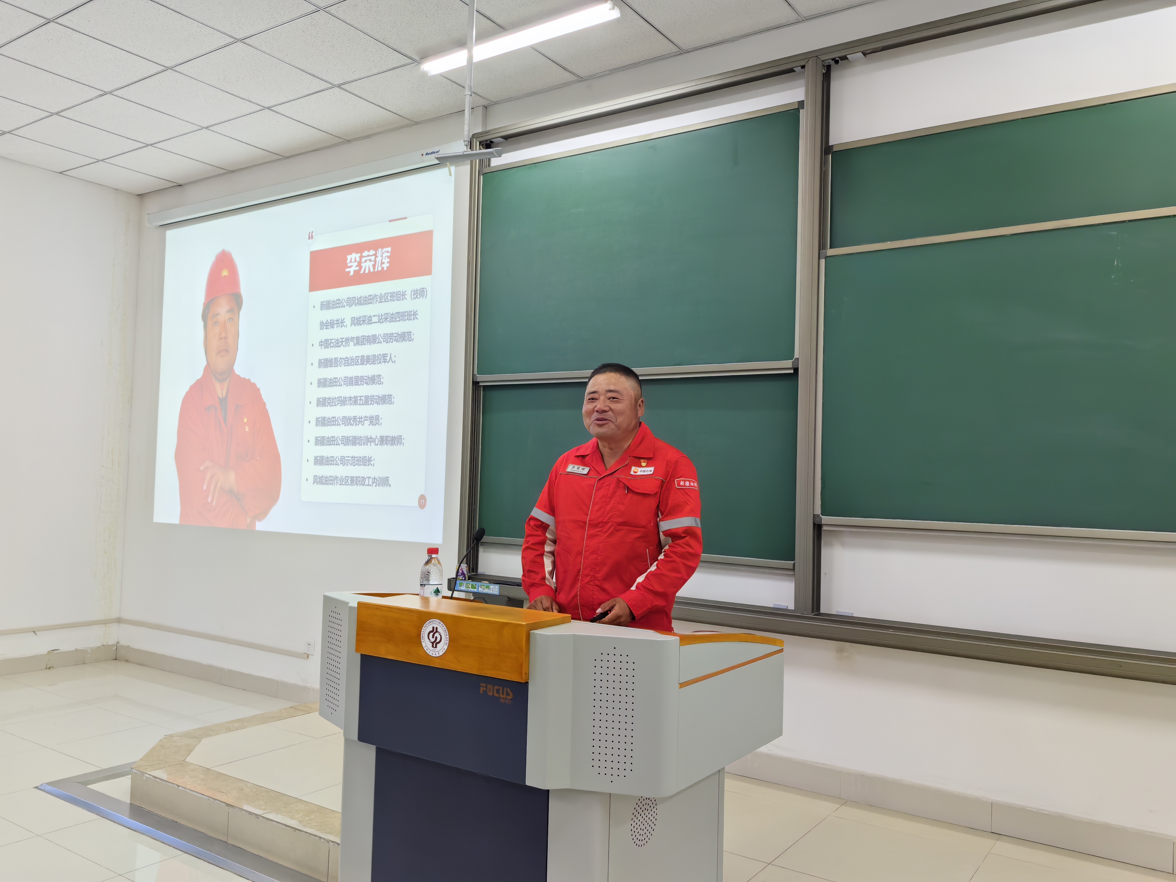 李荣辉从自身从军入伍、退伍转业的人生经历出发,从“怀揣梦想,走军营”、“心怀感恩,到油田”、“领导放心,担重任”、“不忘初心,创佳绩”、“再接再厉,永向前”几个方面,与全体参会党员、团员分享了自己的成长心路。他对自己的从军、从业经历进行总结,展示了退伍军人的担当与奉献。他鼓励和建议全体师生党员、团员学会感恩、敢于承担、勇于守正、乐于创新。
