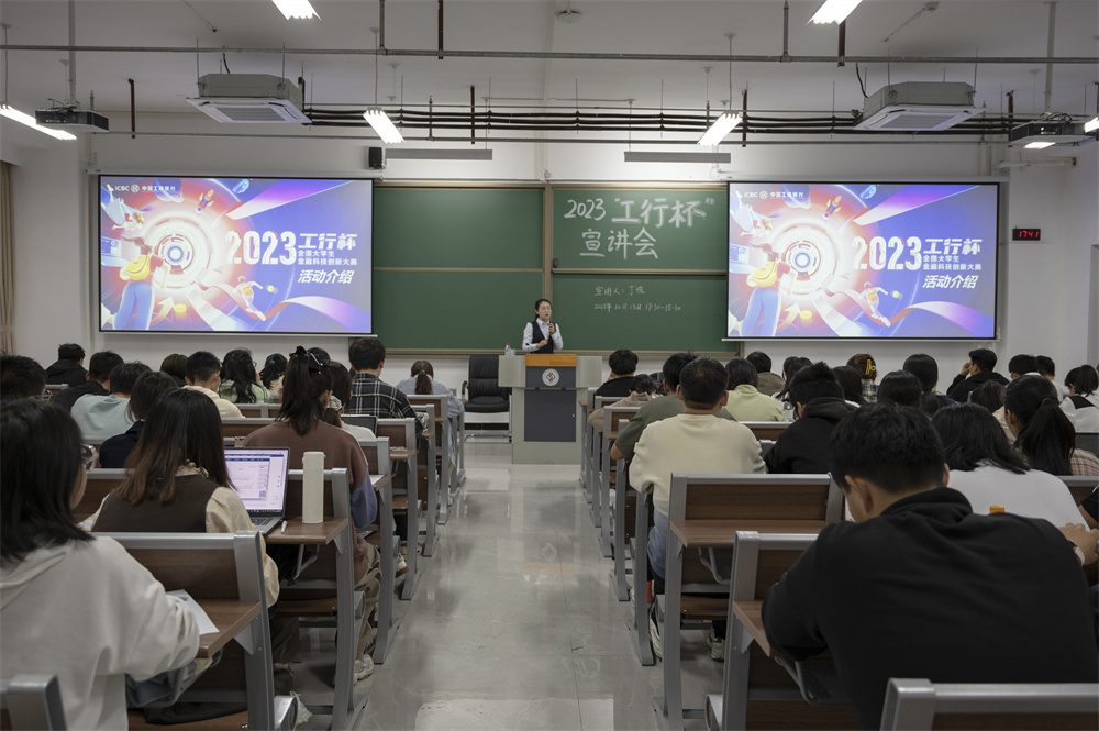 座谈会后,工行克拉玛依市大十字分行在C4教学楼举行了2023年“工行杯”全国大学生金融科技创新大赛宣讲会,介绍了本次“工行杯”的比赛流程、要求及注意事项,校区140余名在校生参加了此次宣讲会。