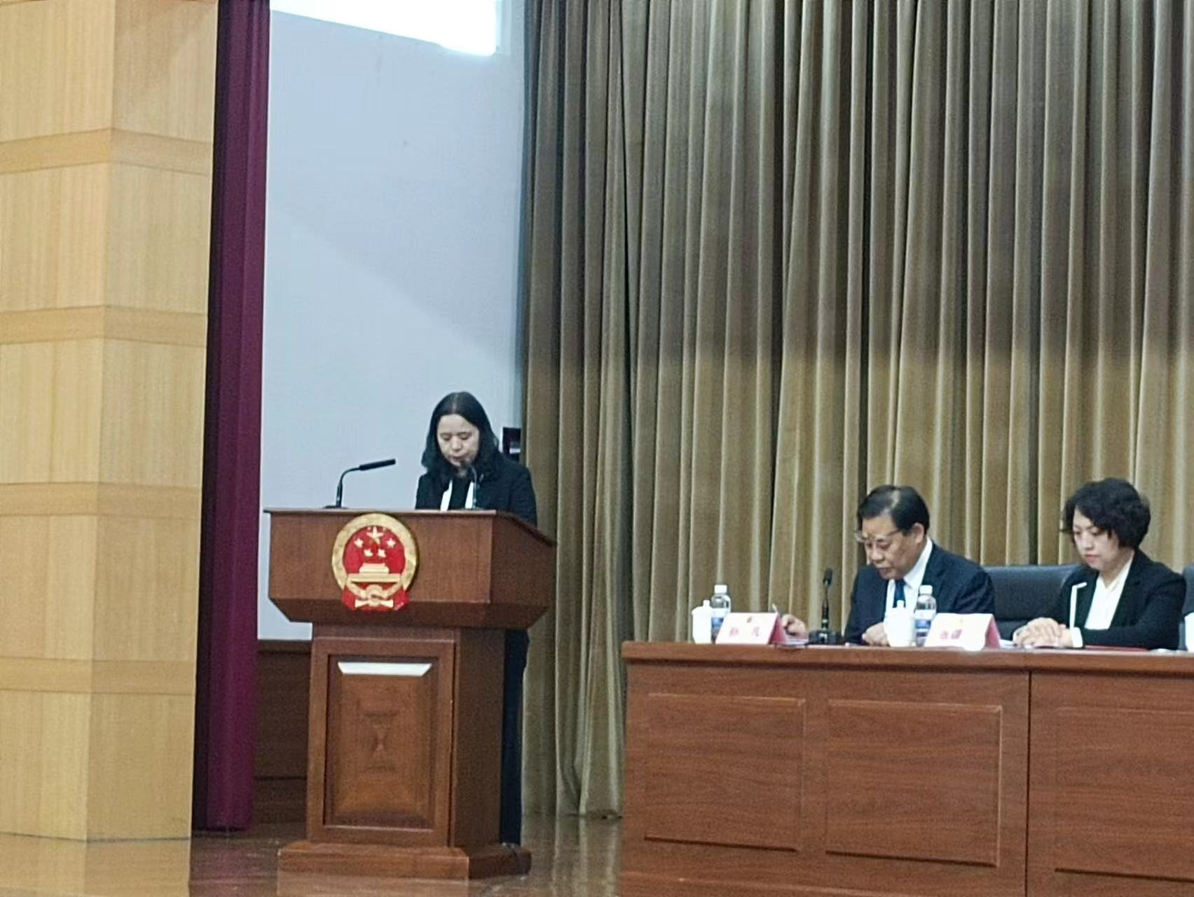 图 中国石油大学(北京)克拉玛依校区副校长张红艳在会上代表立法咨询基地作表态发言