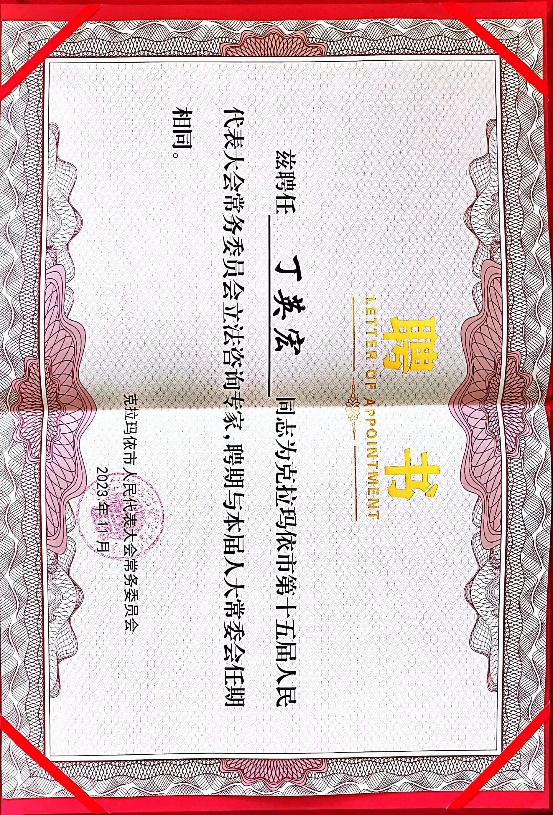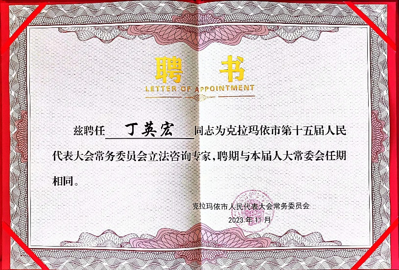 图 校区丁英宏等11位教师被聘任为克拉玛依市人大常委会立法咨询专家