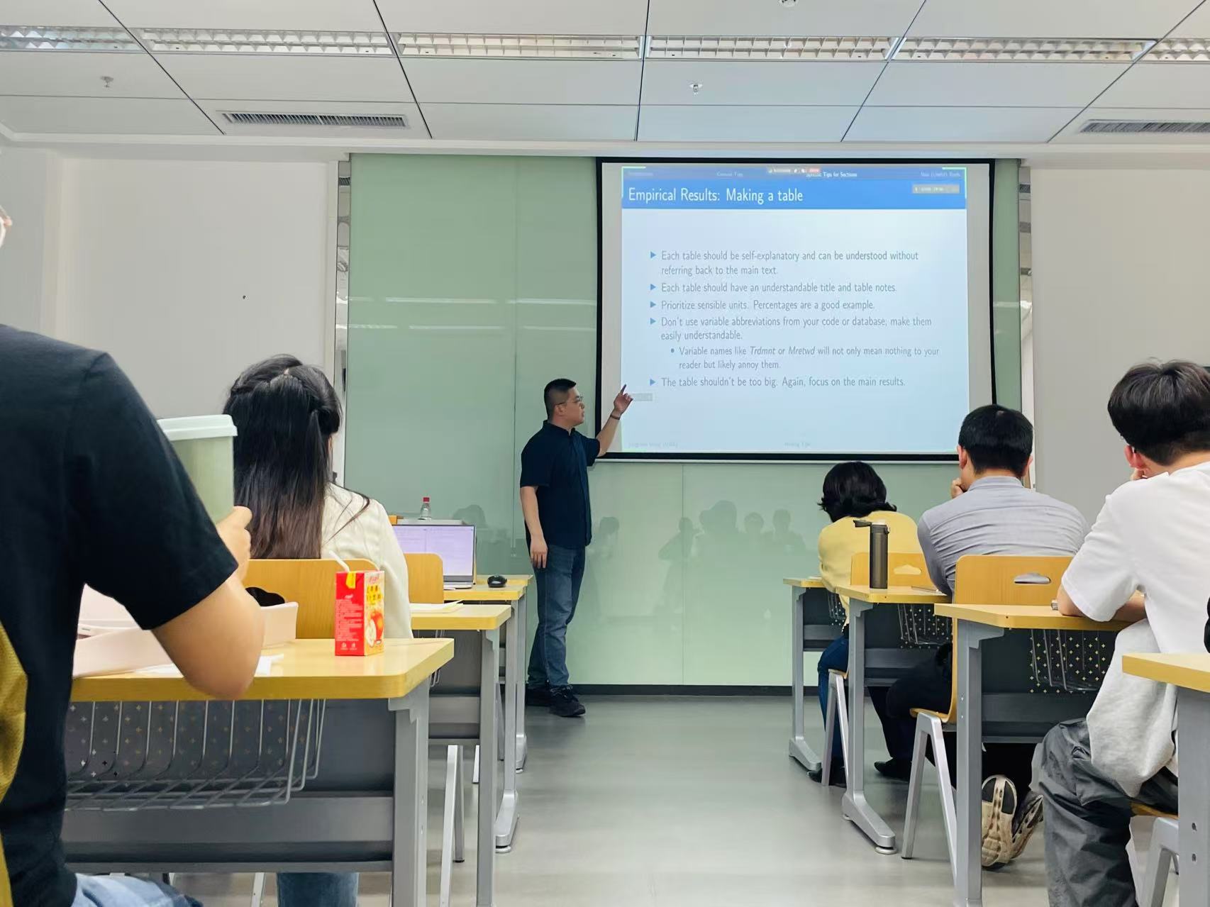 孟令超老师结合自身写作经历与经验,从论文写作最重要的科研想法谈起,总结了文章写作的重点,即语法规范、行文风格规范与结合自身思考三方面。随后,他详细地讲解了写作流程、写作共通技巧与具体写作格式三方面内容,通过中英文写作对比以及生动贴切的举例,让在座的青年教师与同学们深刻理解相关写作要点,向大家展示了清晰的写作思路。另外,他介绍了其他新型写作工具,如Overleaf、Open AI等,讲述各个工具的应用方法与效果,为大家指明了简易、便利的写作途径。