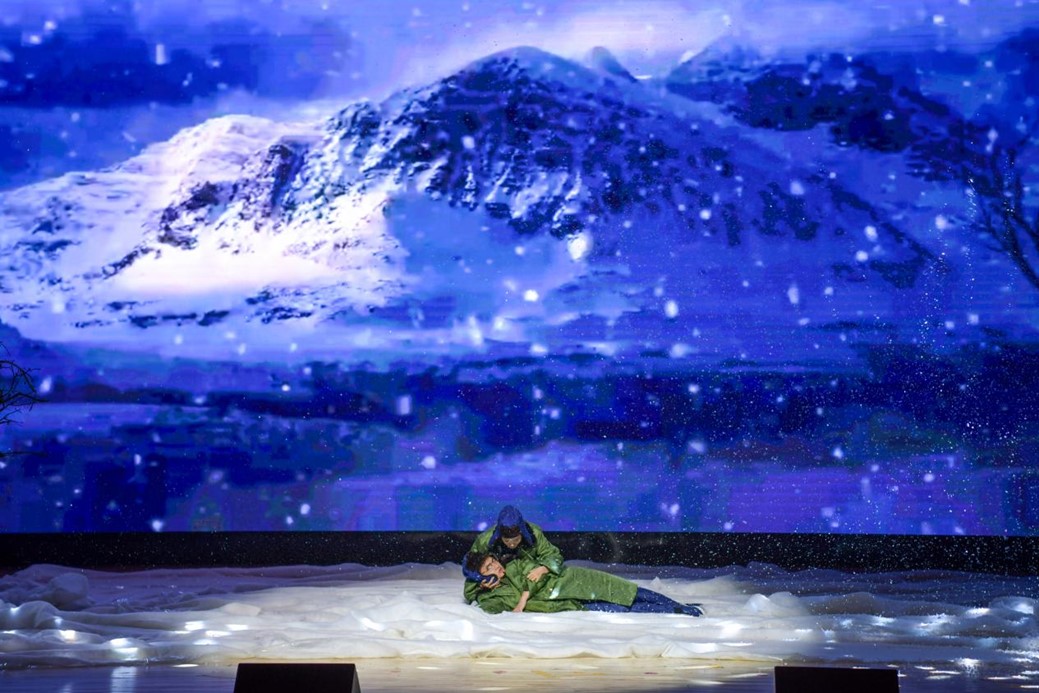 第三幕重现了2020年校区首届118名毕业生给习近平总书记写信,汇报留疆就业的青春志愿,并得到习近平总书记回信勉励的动人故事,体现了新一代石油学子对先辈精神的继承与发扬。