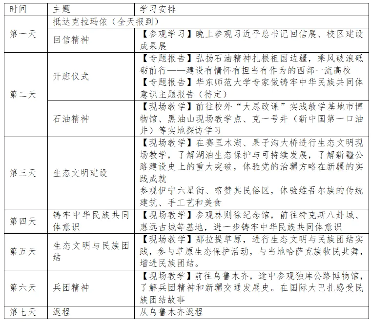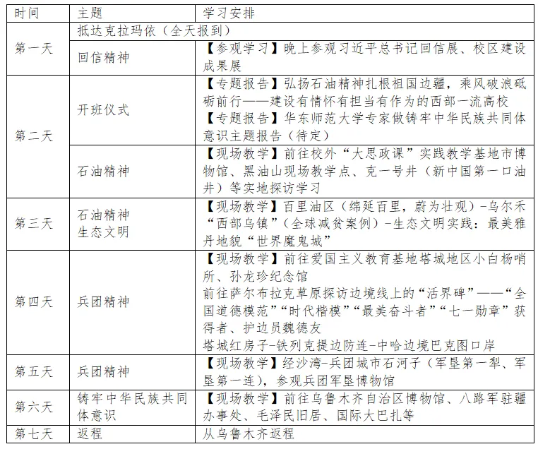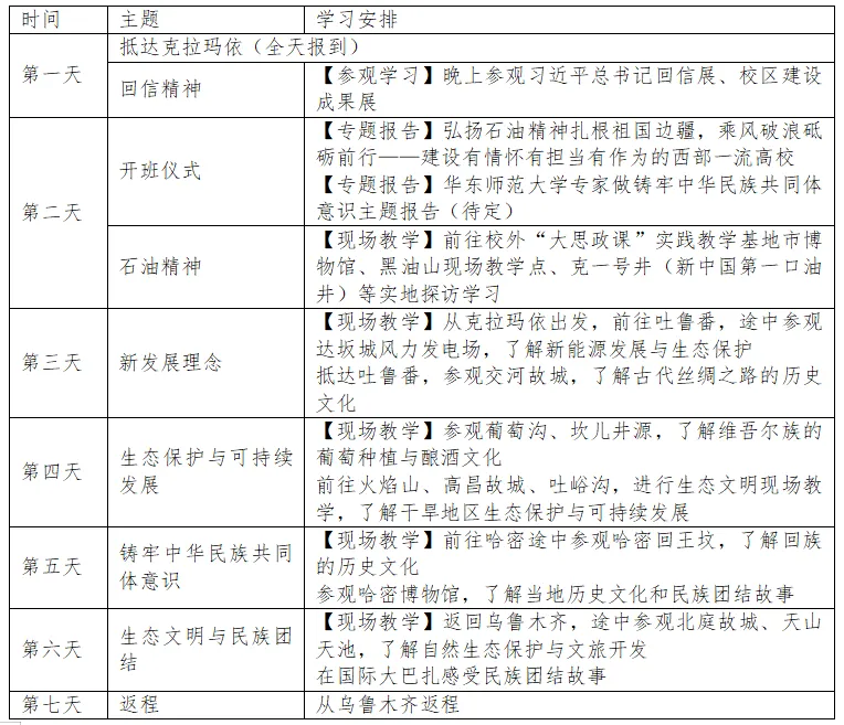 为深入学习贯彻习近平新时代中国特色社会主义思想和党的二十大精神,全面贯彻落实习近平总书记关于思政课建设的重要论述特别是在学校思想政治理论课教师座谈会上的重要讲话精神,深化对当前世情国情党情的认识、深化对党的创新理论的理解、深刻了解党的治疆方略、丰富思政课教学案例,讲好习近平新时代中国特色社会主义思想在新疆维吾尔自治区的生动实践,铸牢中华民族共同体意识,持续推进大中小学思政课一体化建设,中国石油大学(北京)克拉玛依校区马克思主义学院将于2025年暑期开展大中小学思政课教师研修活动,现将有关事项通知如下: