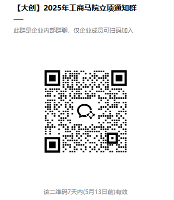 工商管理学院/马克思主义学院2025年大学生创新创业训练计划企业微信群二维码如下,请学生扫码加入企业微信群,相关通知将会在群内发布。