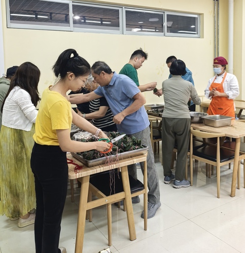 活动当天,工会提前准备了糯米、粽叶、红枣、香菇等丰富食材,并邀请专业师傅现场教学。教职工们围在一起,捋粽叶、填糯米、扎棉线,动作从生疏到熟练,三角形、四角形等各式粽子逐渐堆满托盘。大家互相切磋技巧,其乐融融,现场欢声笑语,粽叶飘香。教职工们纷纷表示,亲手包粽子比买来的更有意义,既学到了传统手艺,又拉近了同事间的距离。此次活动不仅传承了端午文化,更展现了学院团结和谐的氛围。