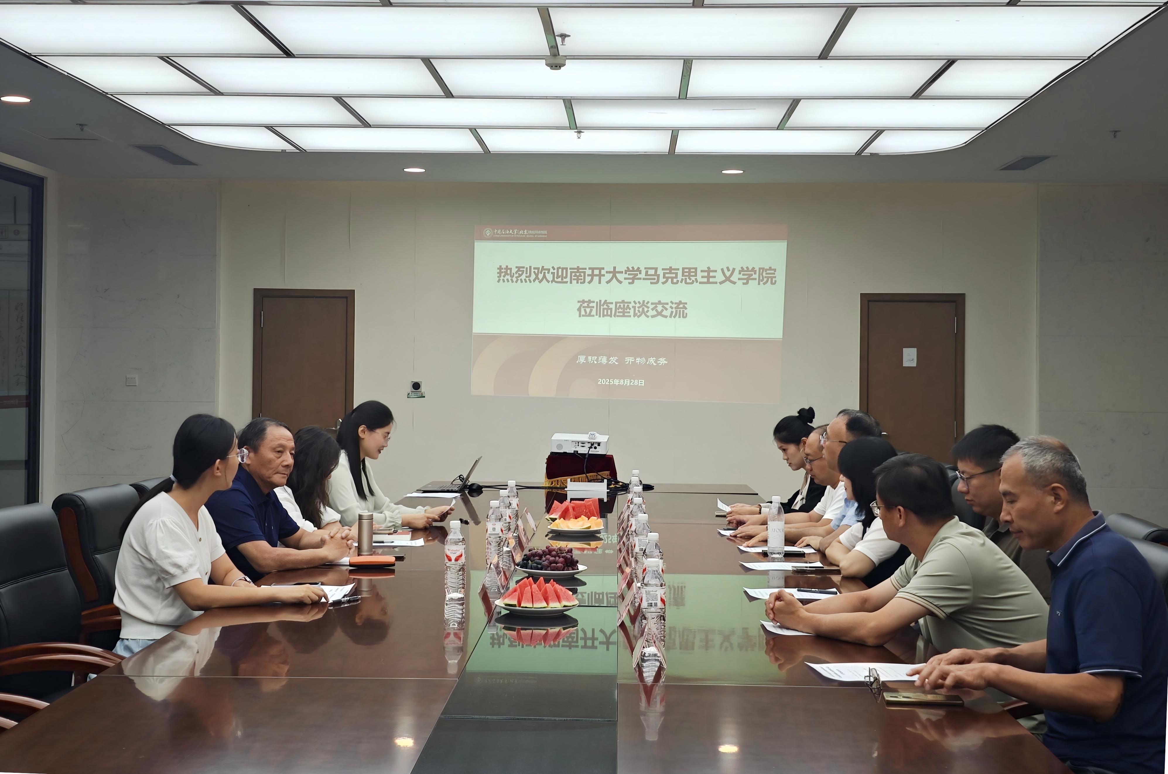 王珂对南开大学专家组的到来表示欢迎,并期待以此为契机,开启两校创新合作的新篇章。南开大学毛中特教研室李洁主任介绍了南开马院的基本情况,分享了办学成就与特色经验。校区于冬妮介绍了《中华民族共同体意识概论》课程设计与慕课建设情况。郝青云从课程赋能、服务增效等方面介绍了党建工作的特色做法。王荣发教授分享了从专业特色与和地缘环境角度有针对性地把思政课讲深讲透讲活的教学经验。双方围绕青年教师培养、学科建设、教学资源等方面交流讨论。