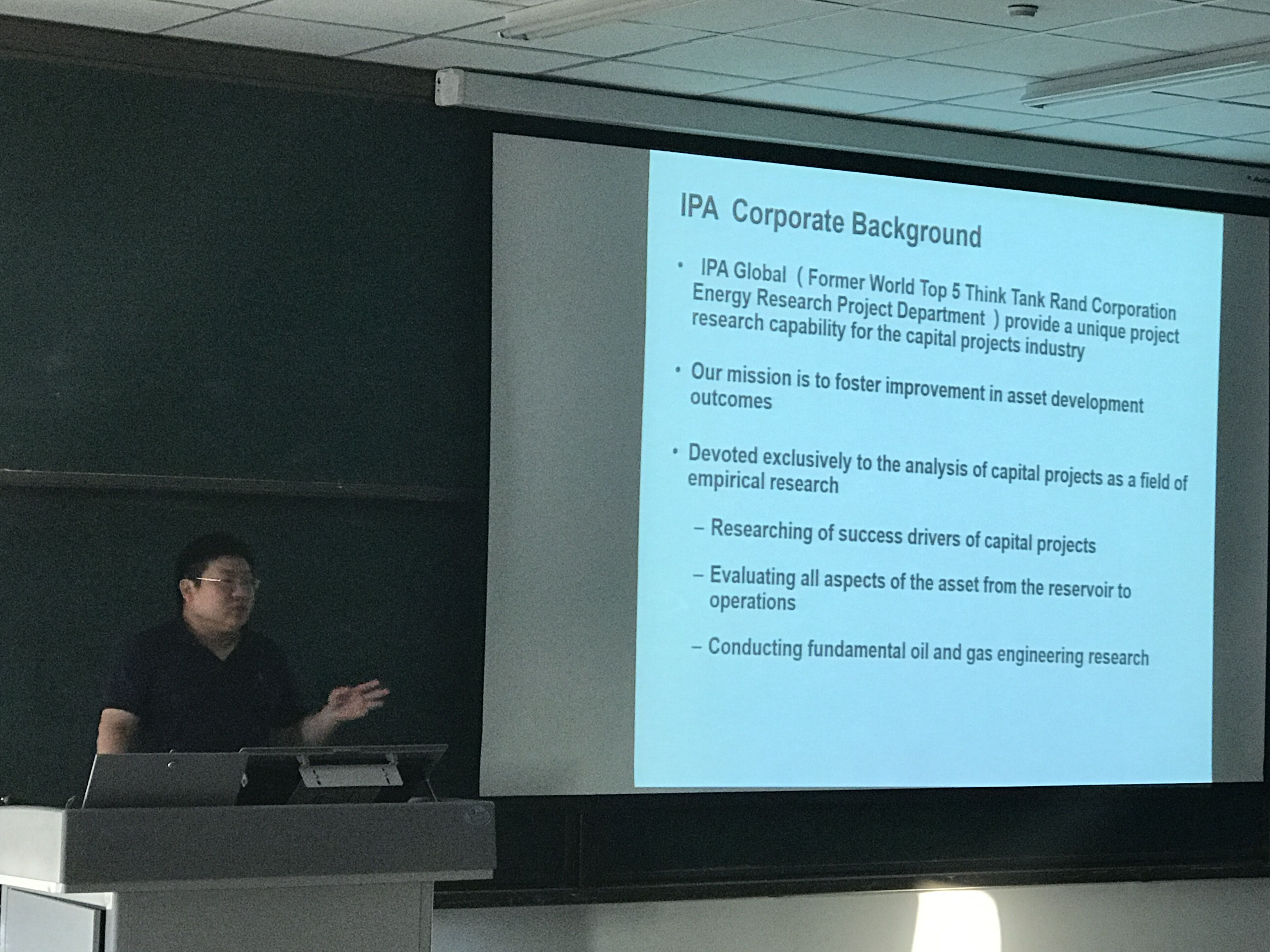5月9日,石油讲堂第三期在C6楼I403教室举办,由美国IPA公司高级研究员芮振华博士进行了油气资源勘探开发项目一体化定量评价系统的报告。本次讲座由石油工程系章星博士主持,石油工程系主任王镇全副教授、新疆培训中心教师、本部卓越班、专业硕士班等,近100名师生参加。
