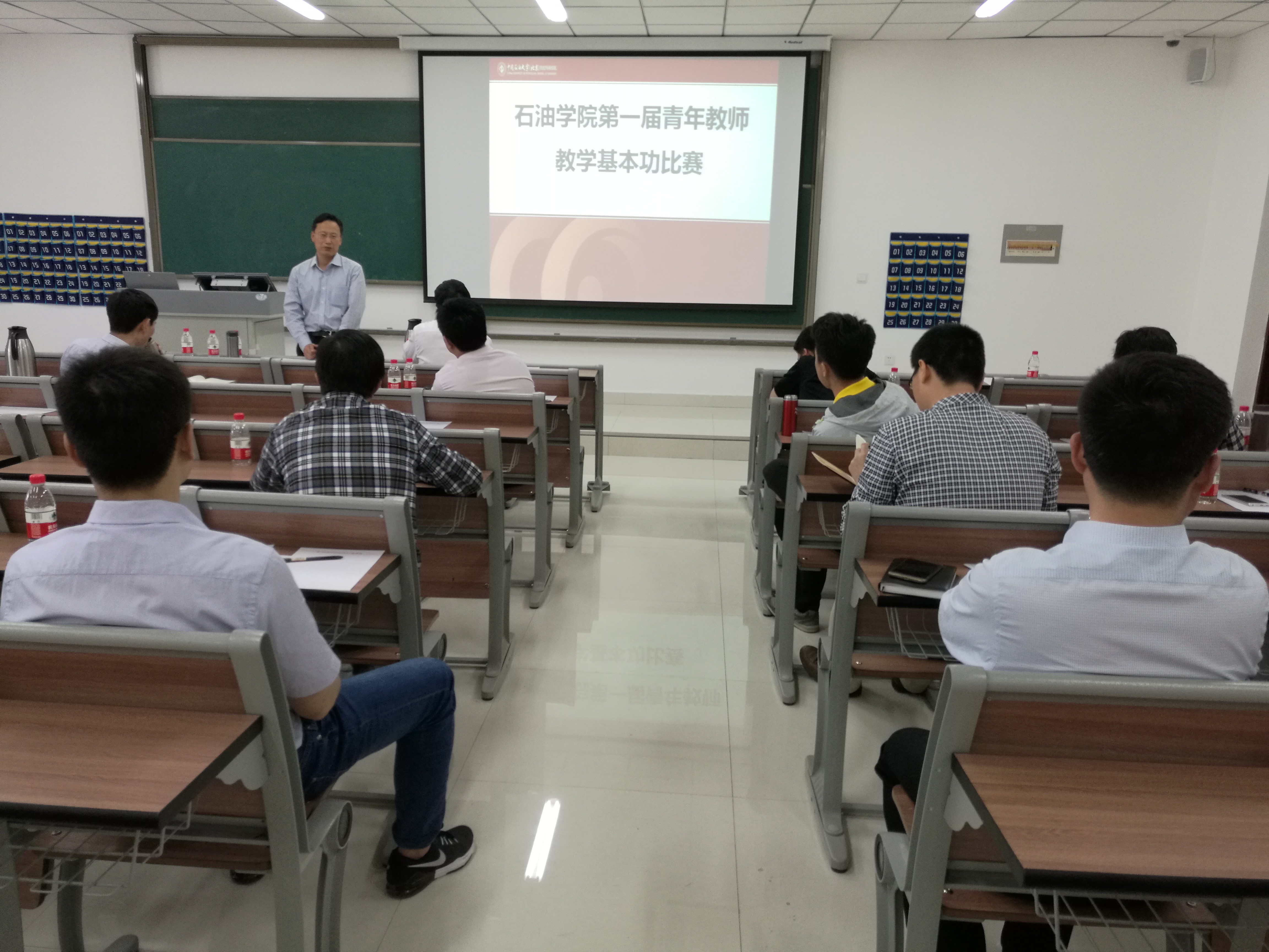 4月27日上午,“石油学院第一届青年教师教学基本功比赛”(以下简称“比赛”)在校区C6楼I区403教室成功举行。学院两个专业共11名青年教师(实验员)参加了此次比赛,校区党群工作部肖中琼老师和北京校区地学院于福生老师莅临指导,学院全体教师全程观摩比赛并参与评分。