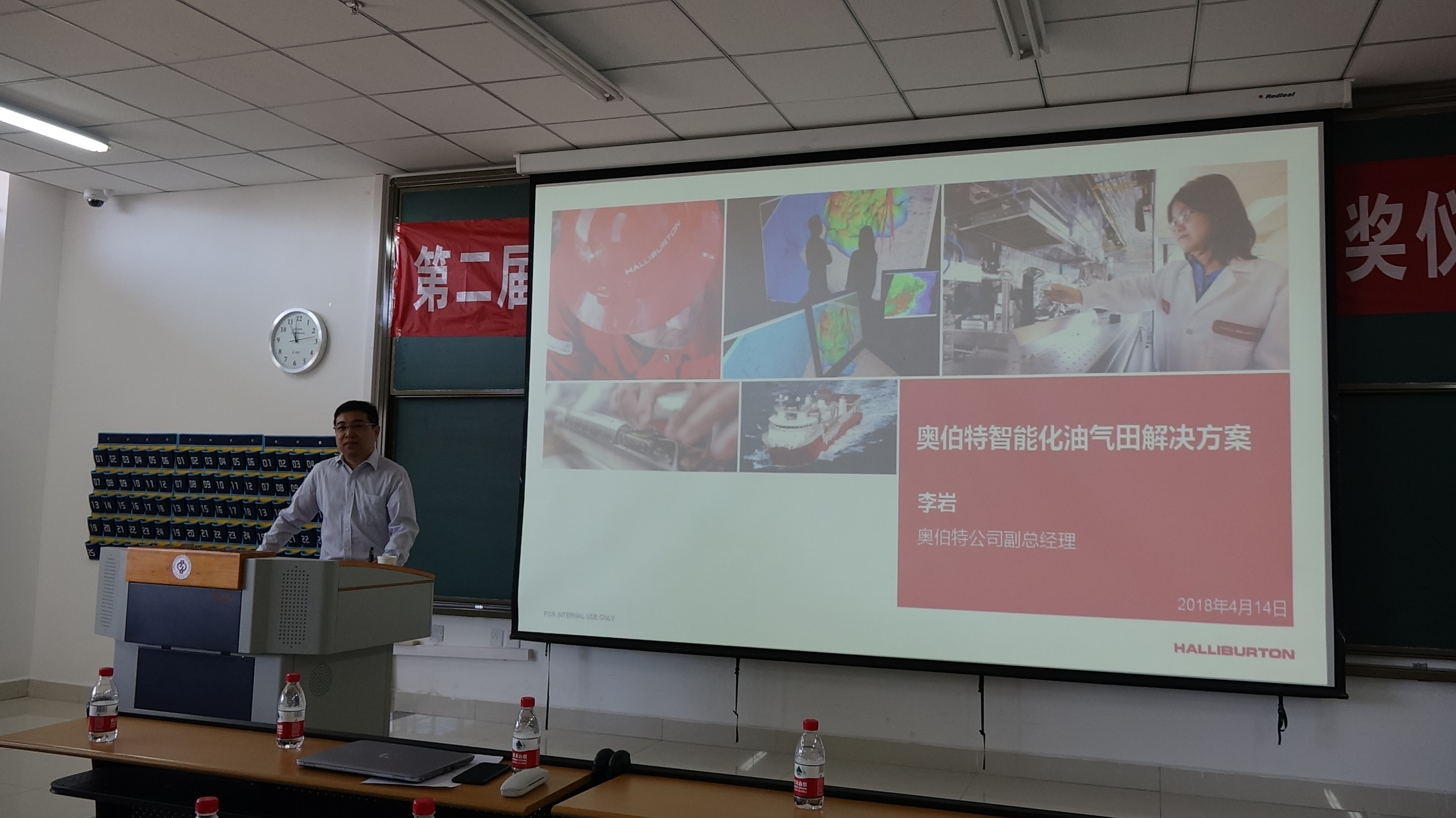 最后,李岩为校区师生作了题为“奥伯特智能化油气田解决方案”的学术报告,介绍了国内外智能化油气田解决方案的发展现状,并结合自身实践经验,与同学们交流探讨了职业规划。