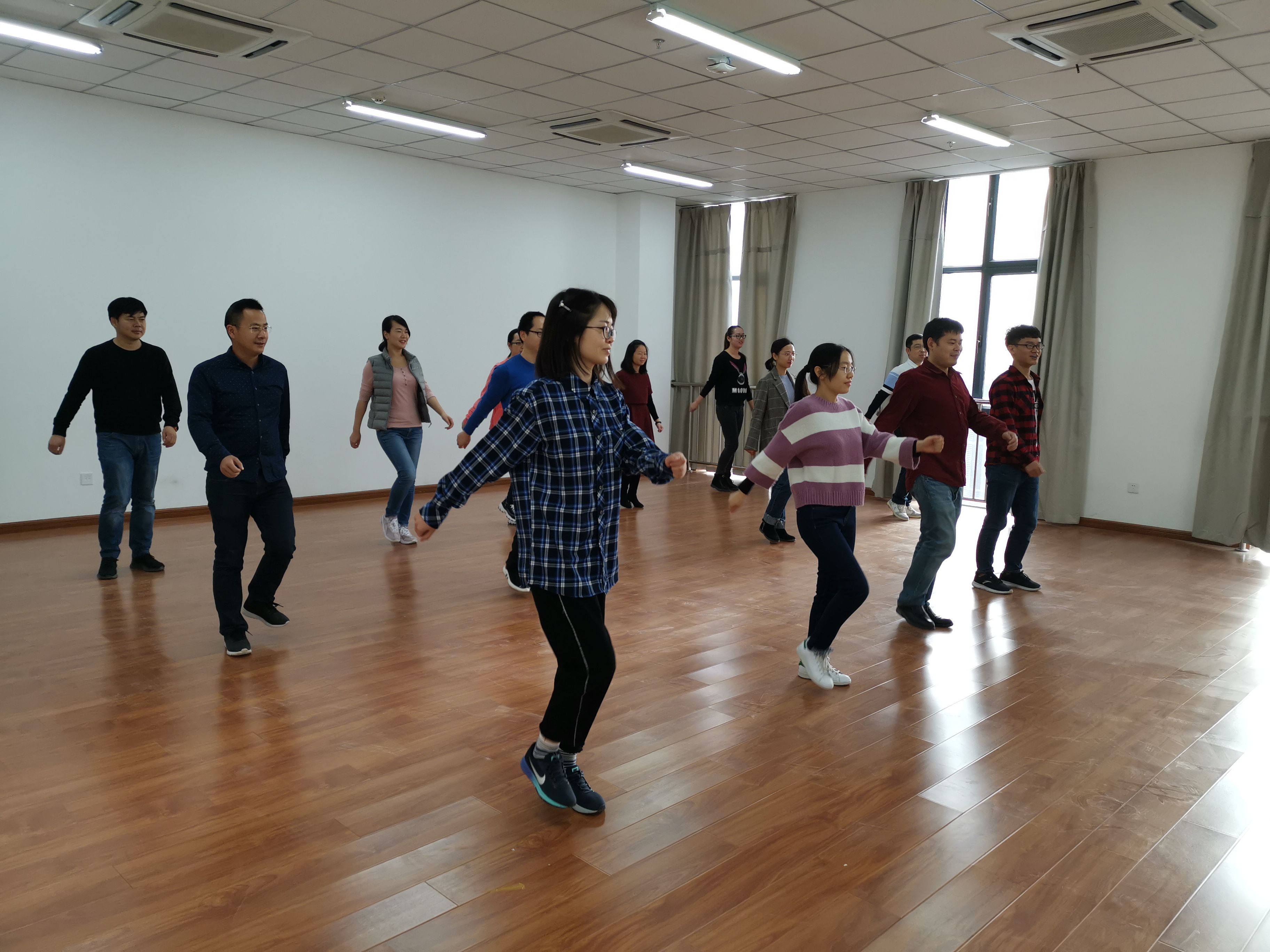 通过每天短短20分钟的工间操活动,可以帮助教职工舒筋活骨、消除疲劳、改善身体和精神状态,并促进教职工之间的交流,提高工作效率以及学院的凝聚力。