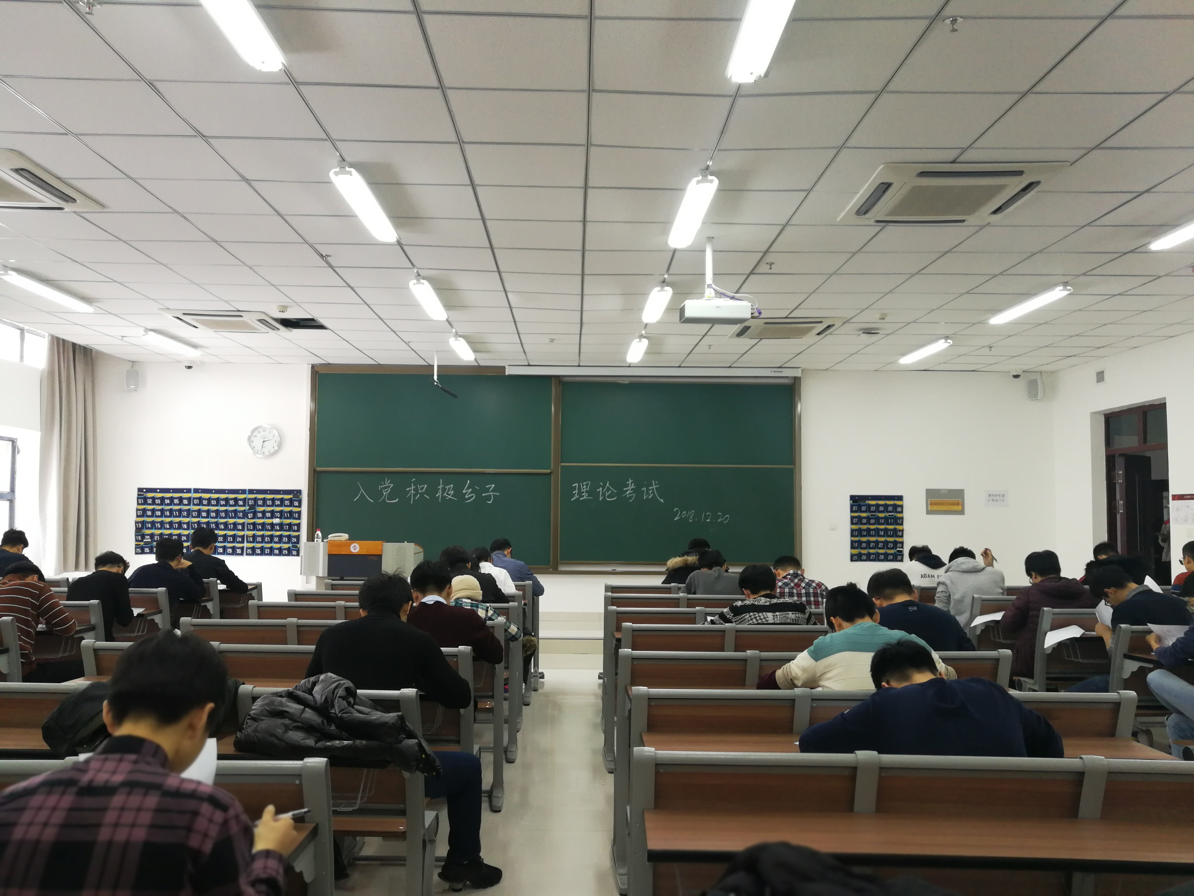 为严肃党员发展程序,提高党员队伍素质,12月20日中午,石油学院党支部在C6教学楼组织了2018年第二次入党积极分子政治知识理论考试,共有124名积极分子参加此次考试。