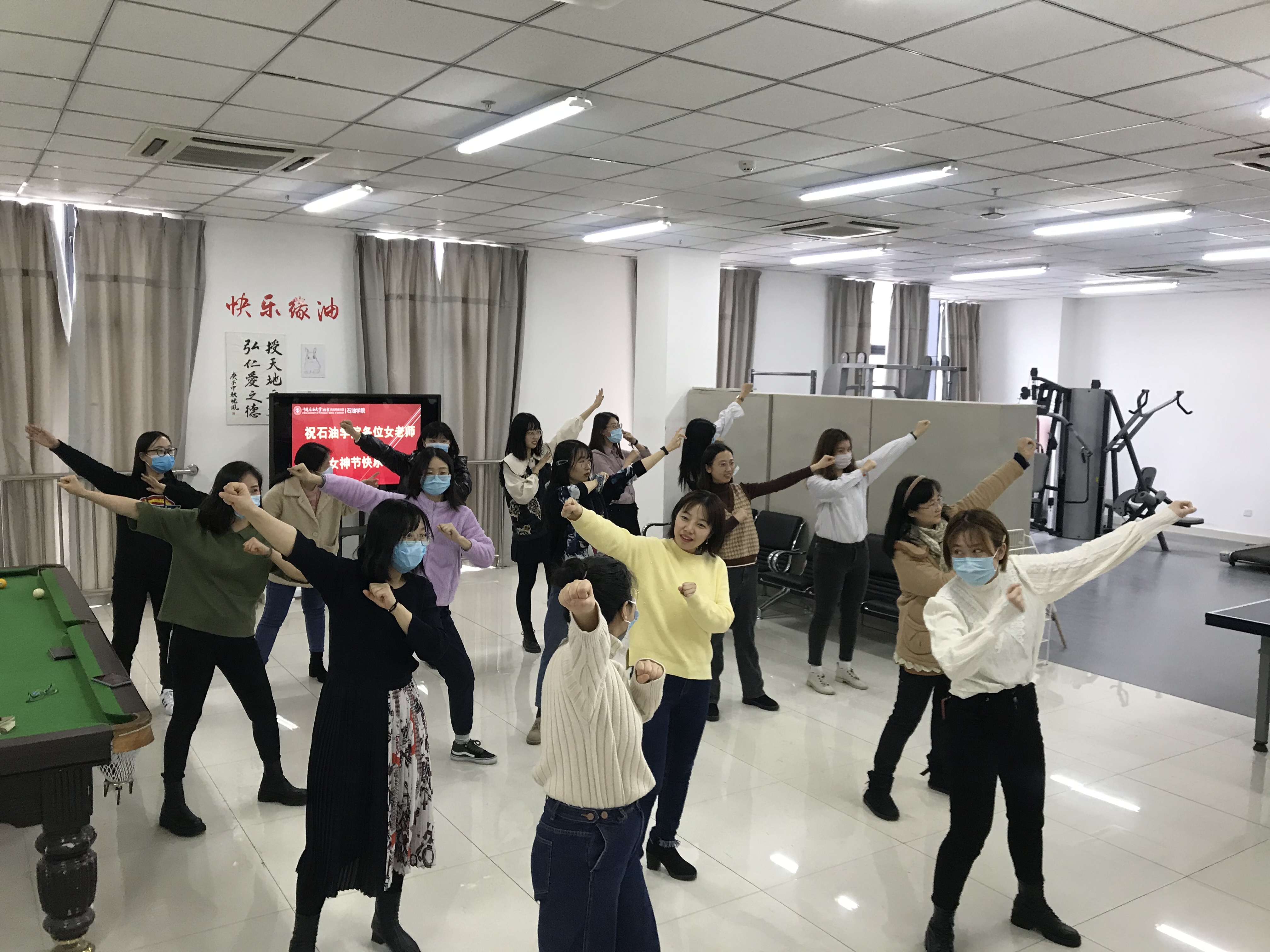 适逢阳春三月“女神节”,为了进一步关爱女教职工,迎接新学期的到来,活跃全体教职工的文化生活,3月8日下午,校区石油学院在学院工会之家开展了“舞动青春”女神节工会活动。