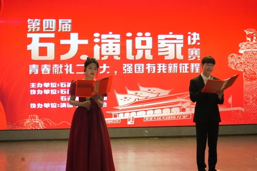 为迎接党的二十大胜利召开,进一步践行爱党、爱国、爱社会主义教育,持续巩固、深化、拓展党史学习教育成果, 4月24日,石油学院举办“青春献礼党的二十大,强国有我新征程”主题演讲比赛决赛,共有十名选手在初赛中突出重围成功晋级决赛。石油学院团总支书记姜雪、党群工作部朱晓萍、学生工作与安全保卫部马健云和孙加石、石油学院辅导员韩仕清、工学院辅导员陈烁、文理学院辅导员李嘉硕以及工商管理学院/马克思主义学院辅导员袁亚婷担任决赛评委,校区近200名学生观看此次比赛。