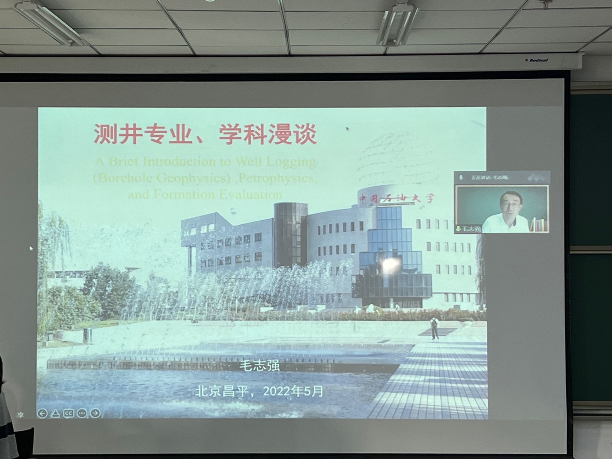 2022年5月27日,石油学院于励志楼举办第四十二期石油讲堂。中国石油大学(北京),中国石油新疆油田公司企业教授毛志强应邀进行了关于“测井专业学科漫谈”的线上讲座,讲座由冯程老师主持。石油学院地质系百余师生到场聆听。