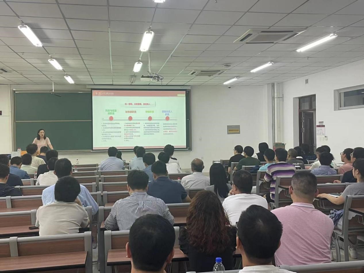 闫骏从项目类型及预算控制、科研项目票据使用管理、科研项目经费管理、财务报销票据规定、财务报销支付结算规定、科研经费报销清单制这六个方面,向学院老师全面、详细地讲解了《科研经费管理相关规定》。并解答了部分老师对科研经费使用的问题。