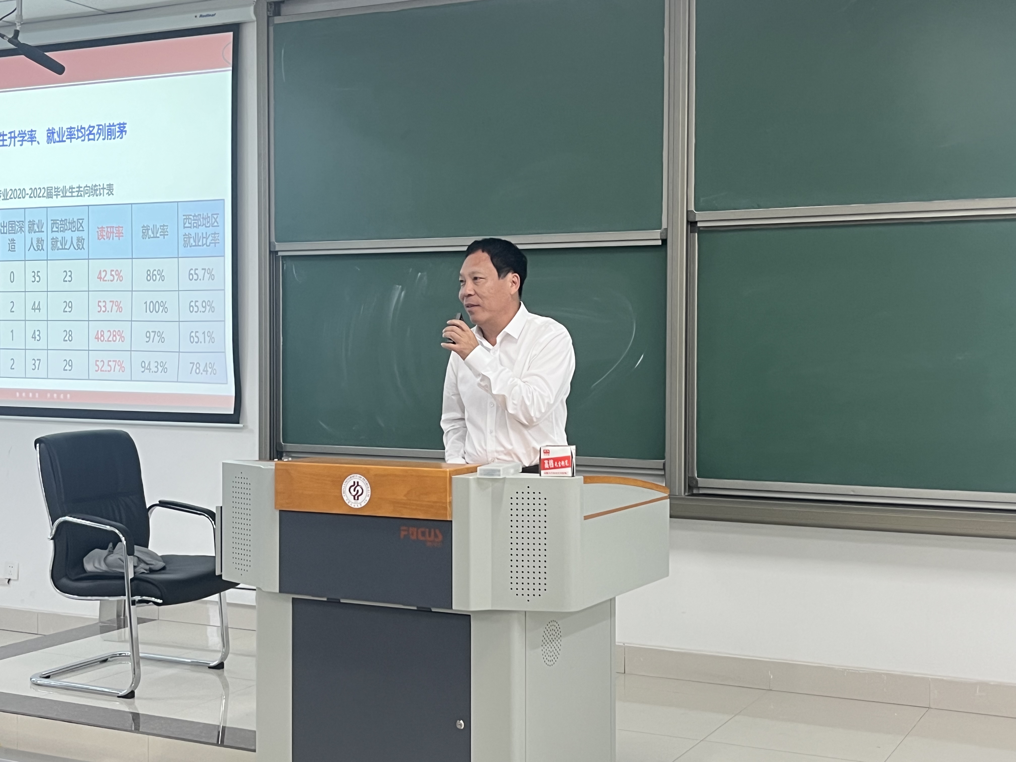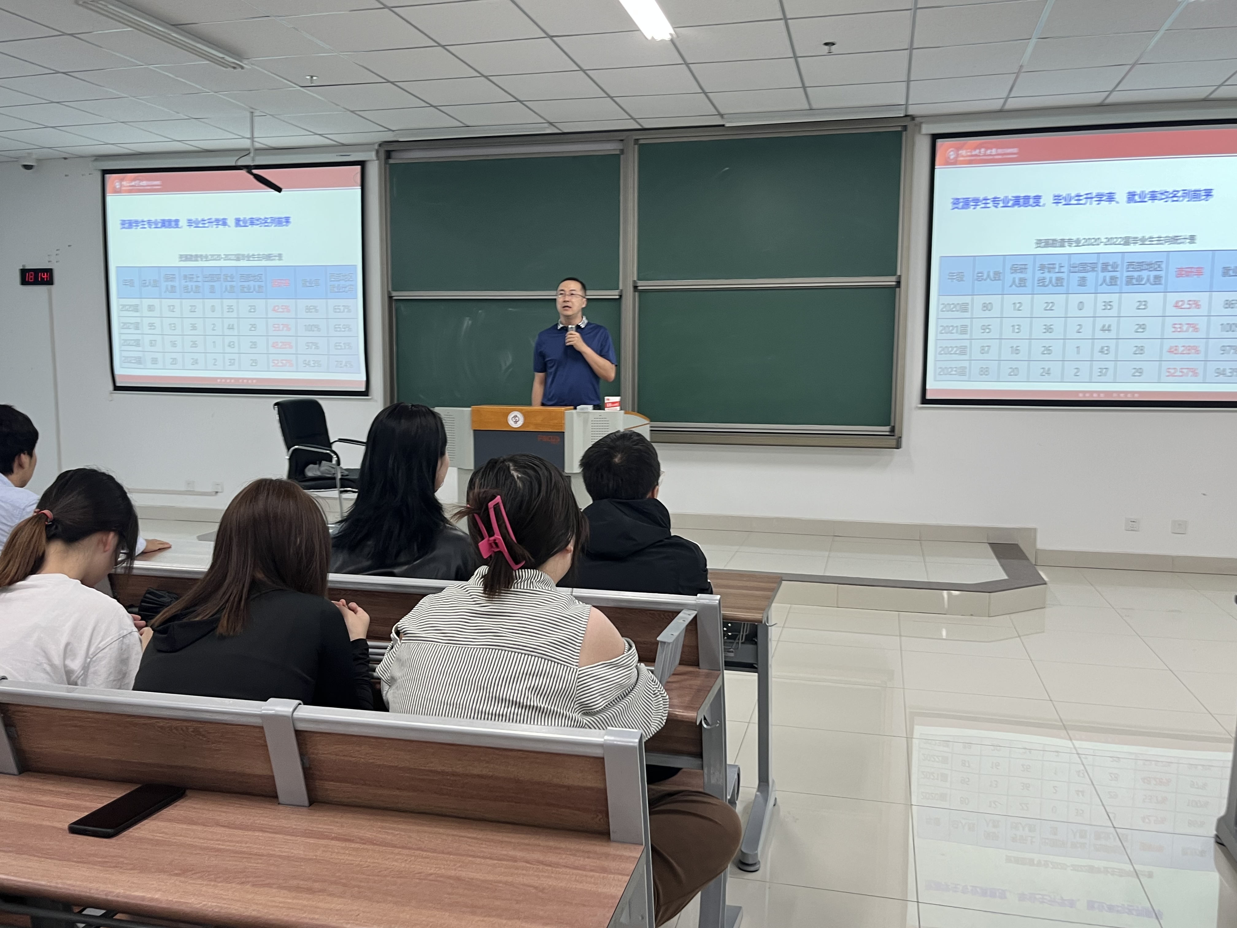 其次,计算机系、石工系、地质系系主任向同学们分析了有关各自专业现状及发展前景,重点突出学业成绩和四六级成绩对于后期发展的重要意义,同时强调了就业与升学的重要性,敦促大家积极准备升学、就业等工作。