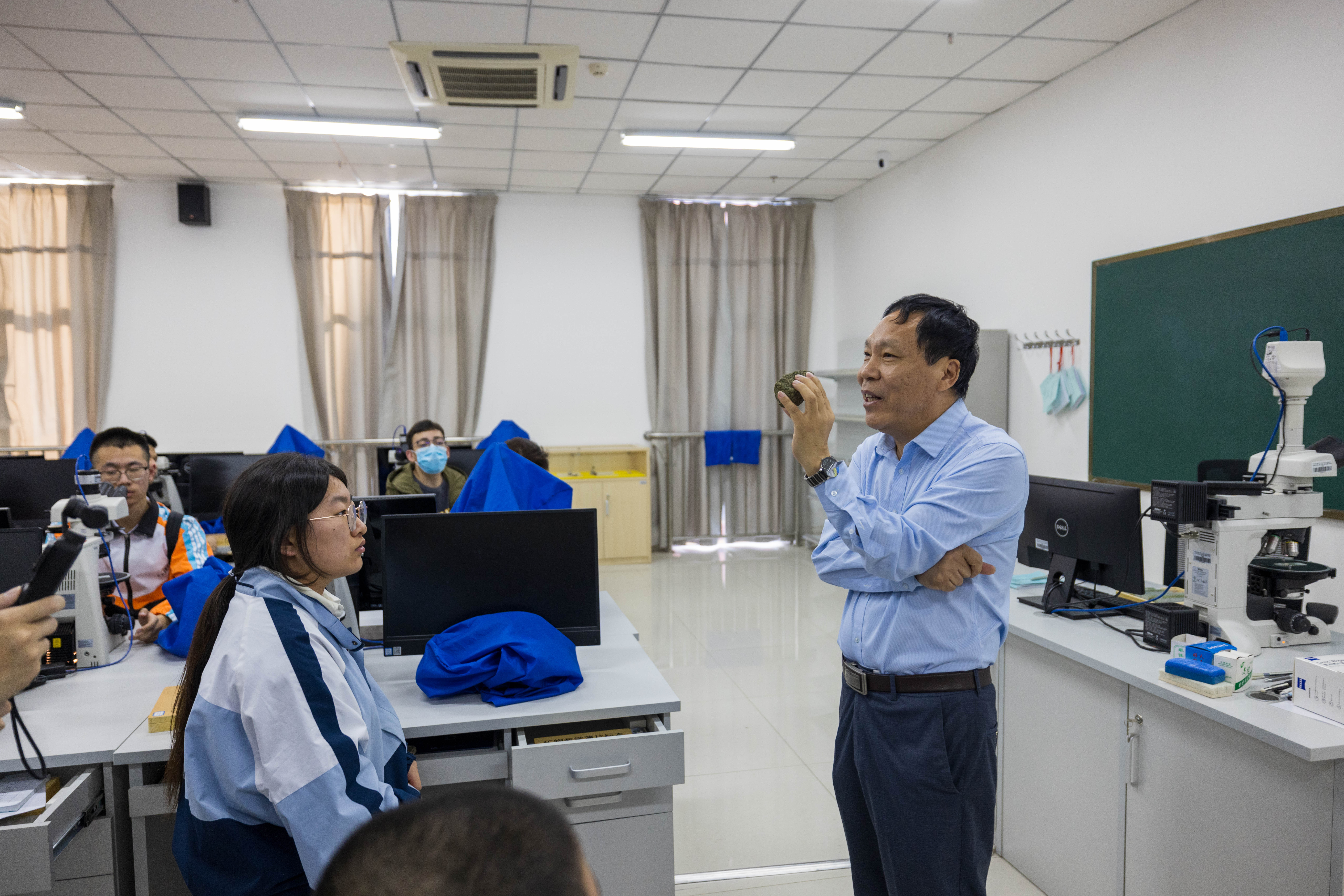 活动伊始,谢庆宾教授以《探究岩石内部的微观世界》为主题,围绕探究岩石内部结构原因、如何观测矿物岩石的微观世界以及微观世界多彩原因,用浅显易懂的语言以及启发式、互动式的教学方式,带领“油苗”们从宏观到微观,从整体到局部领略了岩石世界的神奇奥秘,在揭开岩石内部神秘面纱的同时,也在“油苗”们心中种下了“为能源强国保驾护航”的种子。