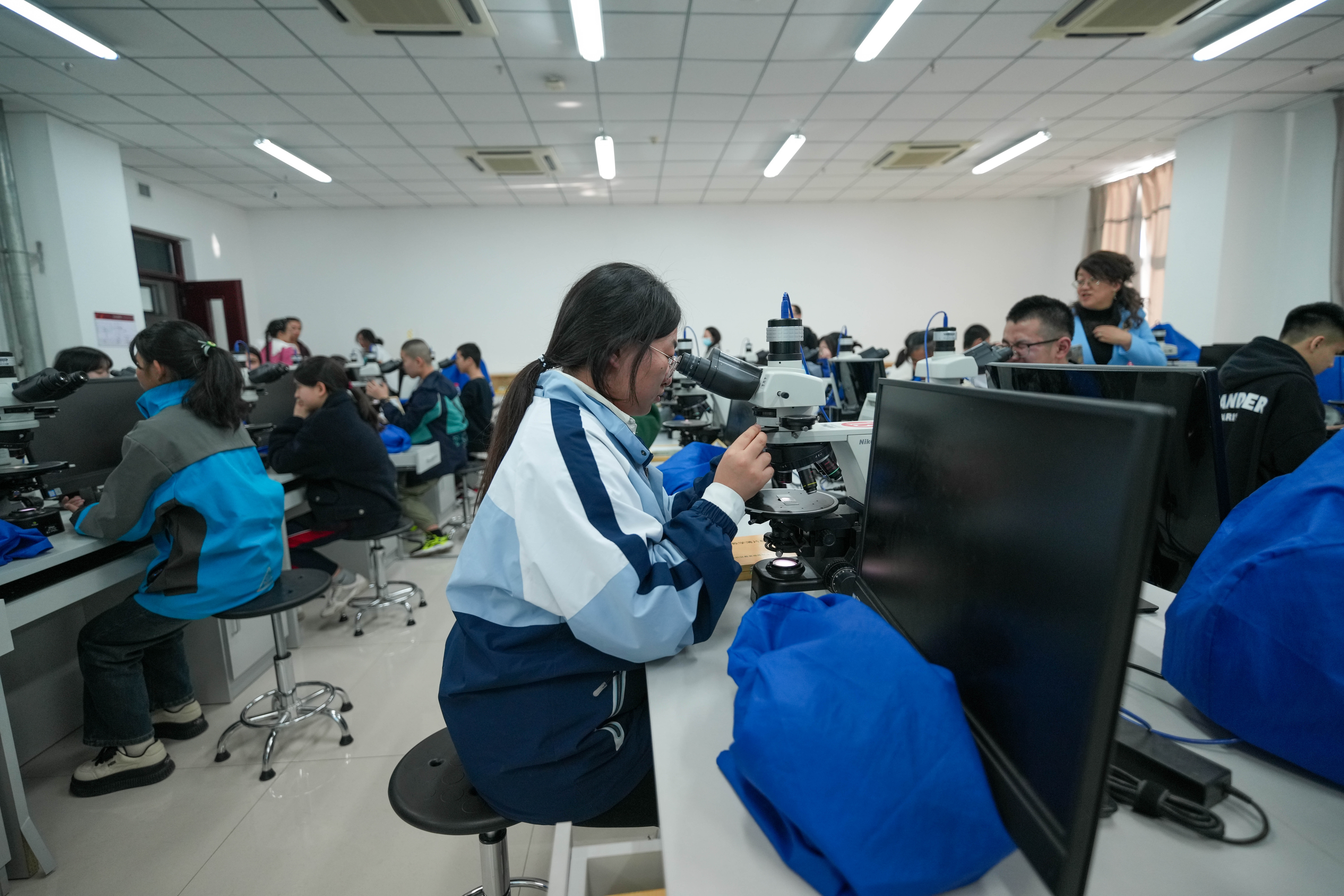 报告结束后,“油苗”们参观了石油学院岩矿实验室。在实验室内,谢庆宾教授详细讲解了实验仪器的原理以及使用方法,并指导“油苗”们利用偏光显微镜观测岩石样品内部结构,了解显微镜下的岩石微观特征,领略岩石内部的千姿百态、五彩缤纷。