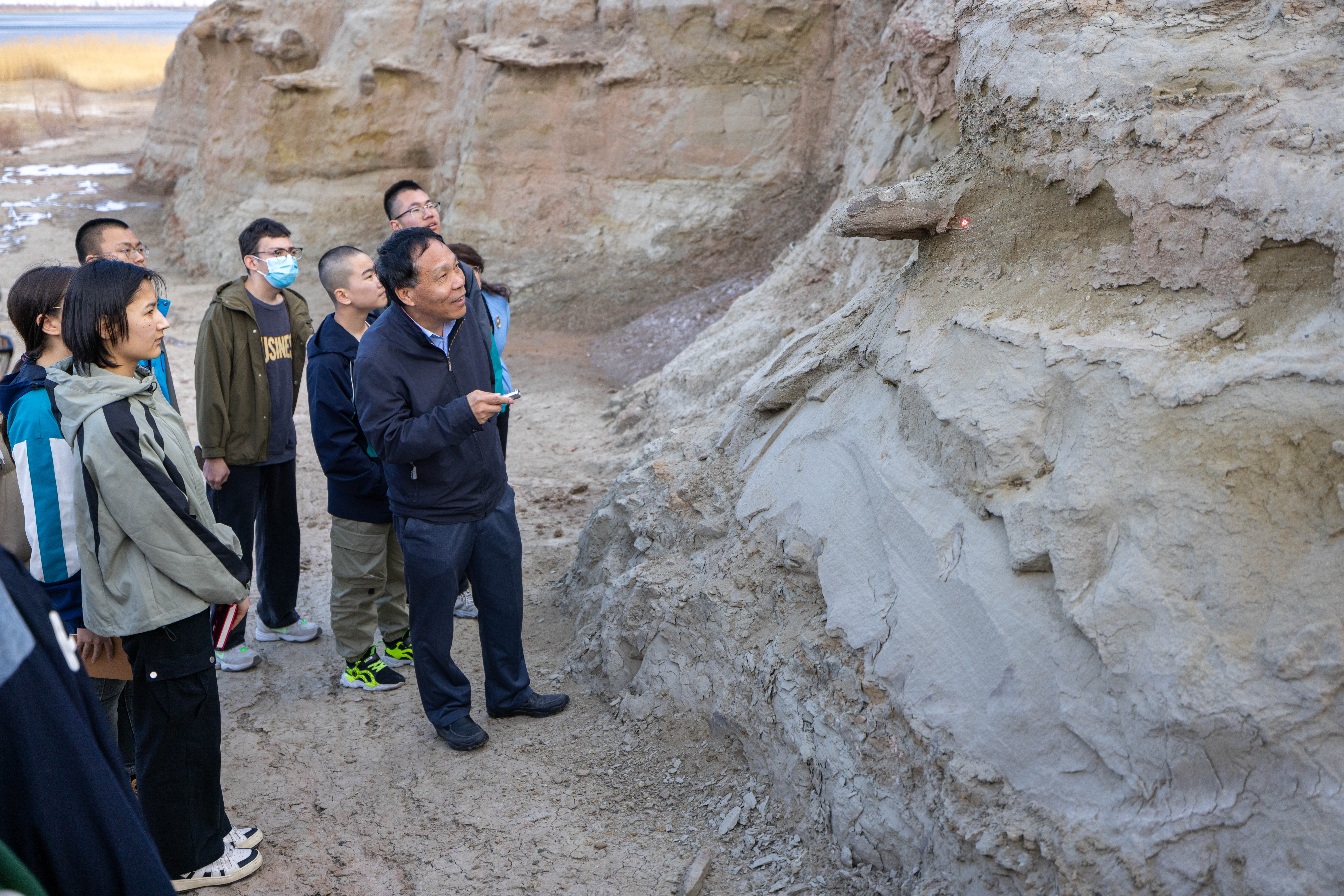 参观结束后,“油苗”们乘车前往红山湖进行野外地质露头观测。在红山湖畔,谢庆宾教授将课堂理论学习、实验室观测以及野外实践结合,详细讲述了红山湖露头的地质特征、形成演化历史以及油气储层特征与形成机理。