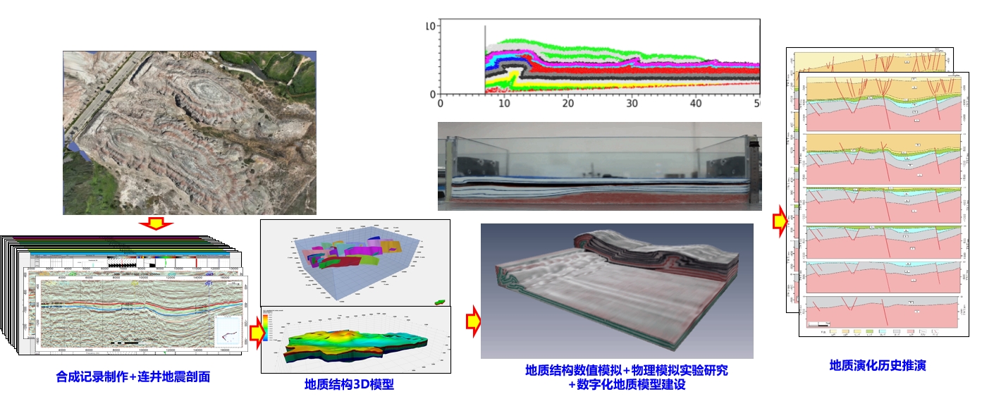 采取“地表—地震—非地震—构造模拟”四位一体的建模手段,动静态结合建立复杂构造带构造模型,能够模拟挤压、拉伸、走滑、底劈、构造反转以及构造同沉积过程模拟。实现多资料一体化融合解释、正反演一体化4D建模、勘探目标精准建模等功能。