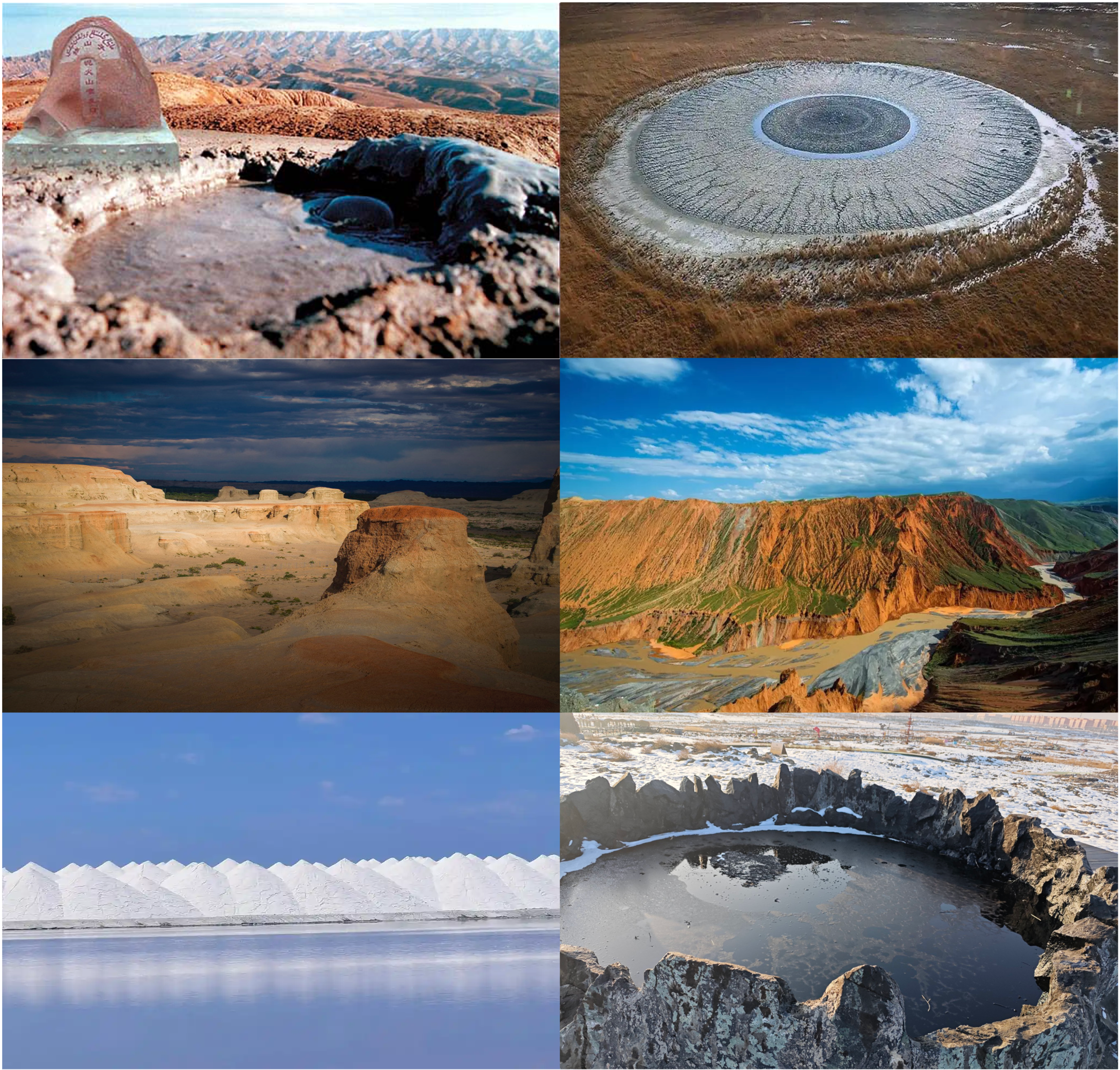 Dushanzi mud volcanoes in the southern Junggar Basin: Formed approximately 3 million years ago, this geological feature was built up by eruptions of mud and natural gas and is closely linked to the formation of the Dushanzi Oil Field.