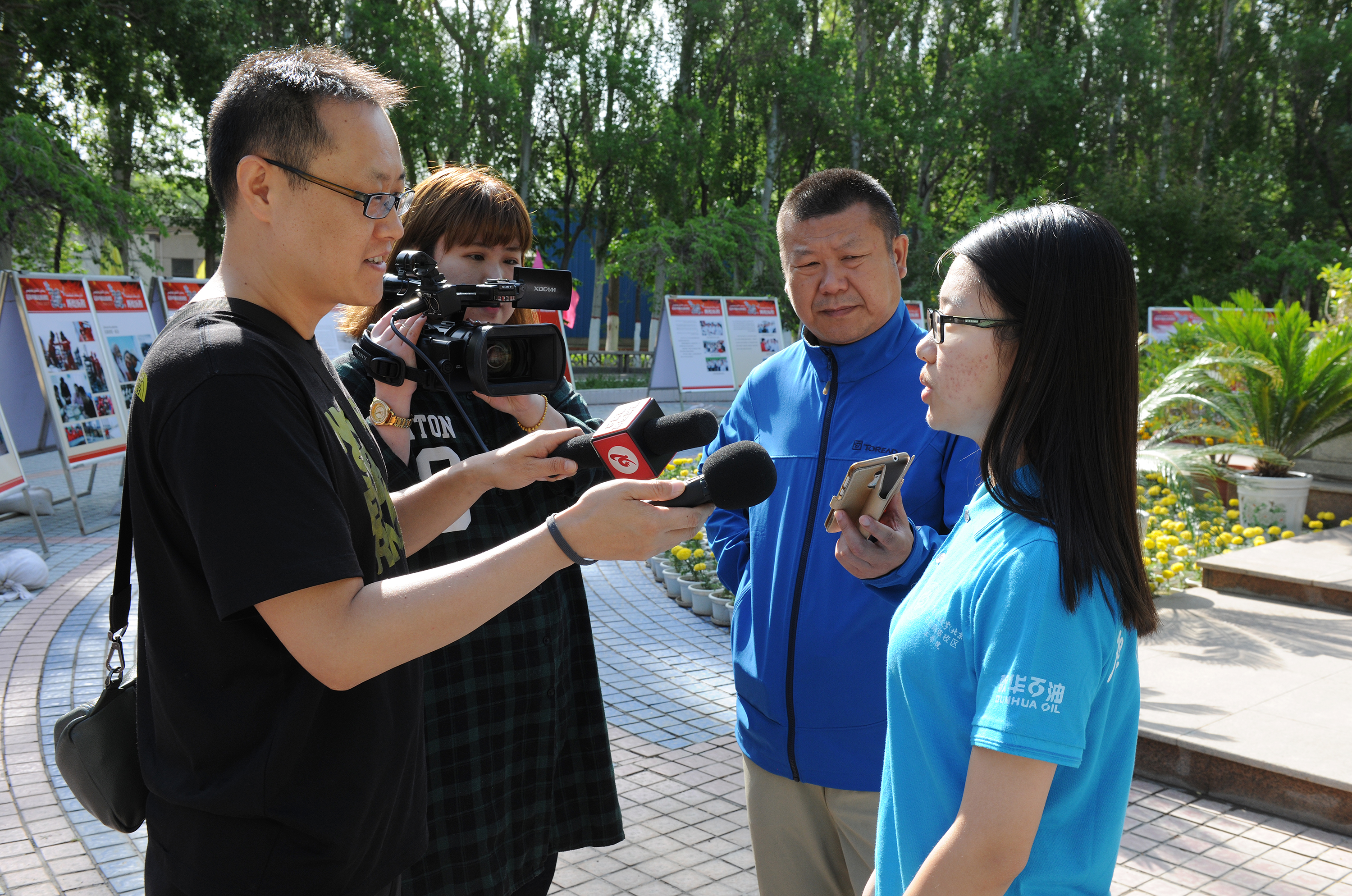 仪式结束后,校区师生代表接受了当地媒体的采访,并参观了拉玛依民族团结36辉煌历程和克拉玛依油田发展历程两个专题展览。
