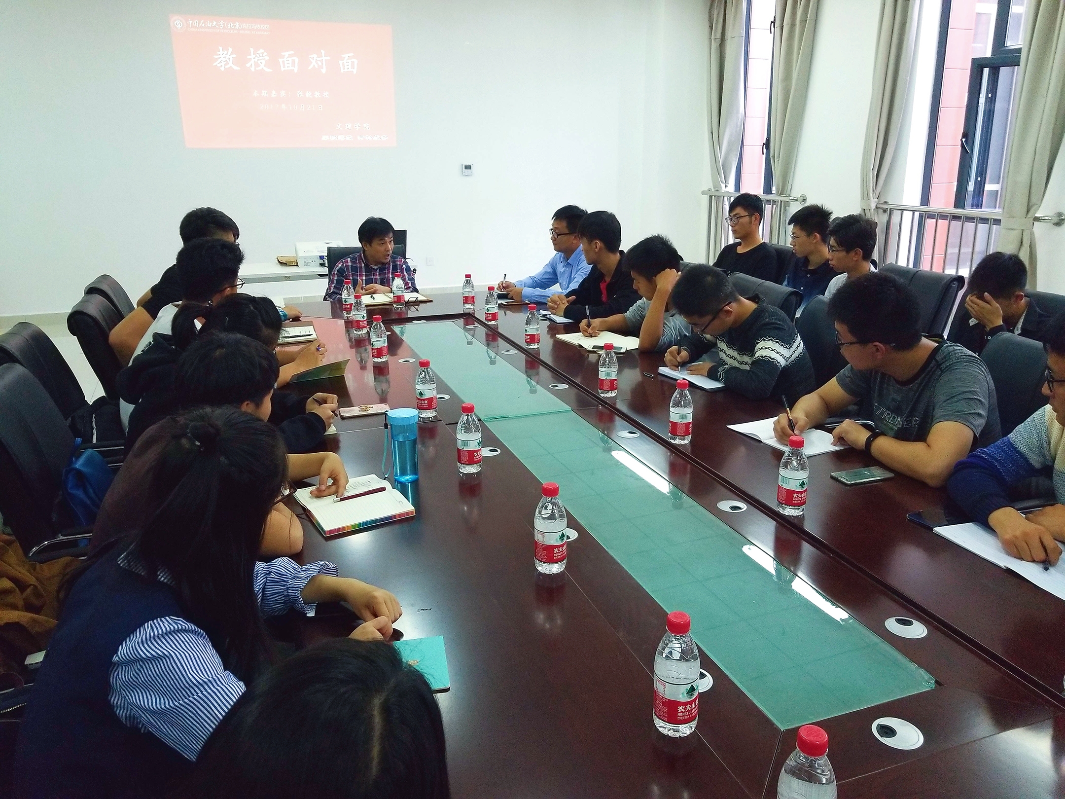 10月22日上午,文理学院第一期“教授面对面”活动在C5教学楼四楼会议室举行,文理学院院长张毅教授作为第一期嘉宾与来自文理学院四个专业的20余名2017级学生代表进行了亲切交谈。
